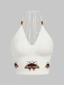 Fairycore Maglia A Maglia Halter Ricamata Con Farfalla Notturna Per Donna