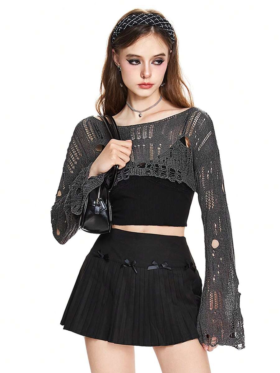 Fairycore Maglione oversize da donna con collo a giro, maniche lunghe e effetto consumato, per primavera e autunno
