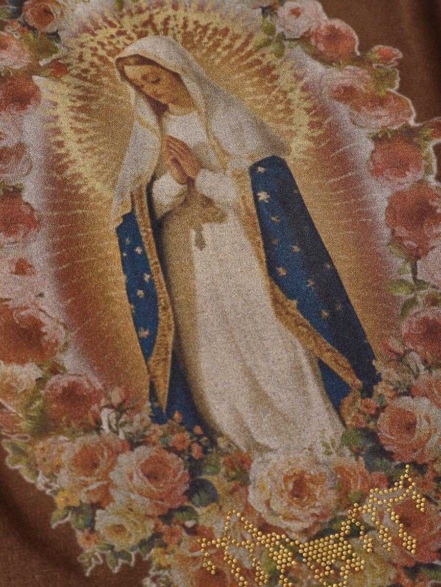 Fairycore Canotta da donna con stampa di angeli e madonne, decorata con croci, in stile Y2K Goth usurata