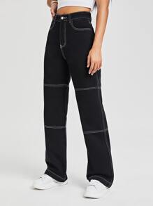 Jeans fuoco con ricamo vita alta Pantaloni larghi