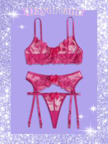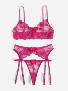 Set lingerie con ricamo floreale con ferretto giarrettiera