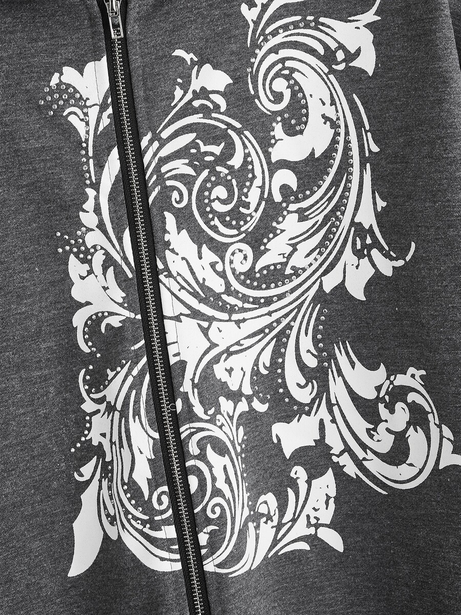Felpa con cappuccio con grafica floreale con zip con coulisse