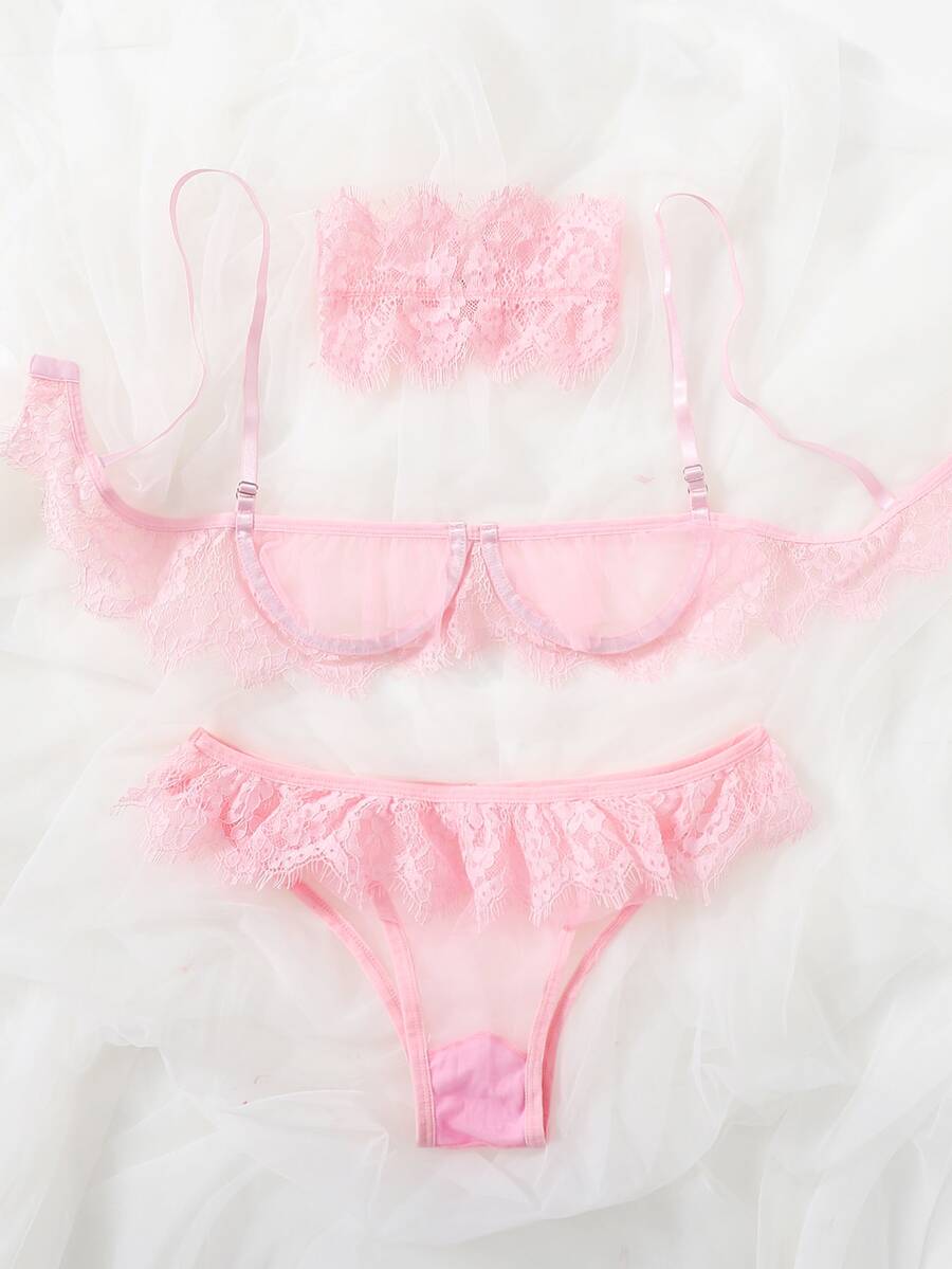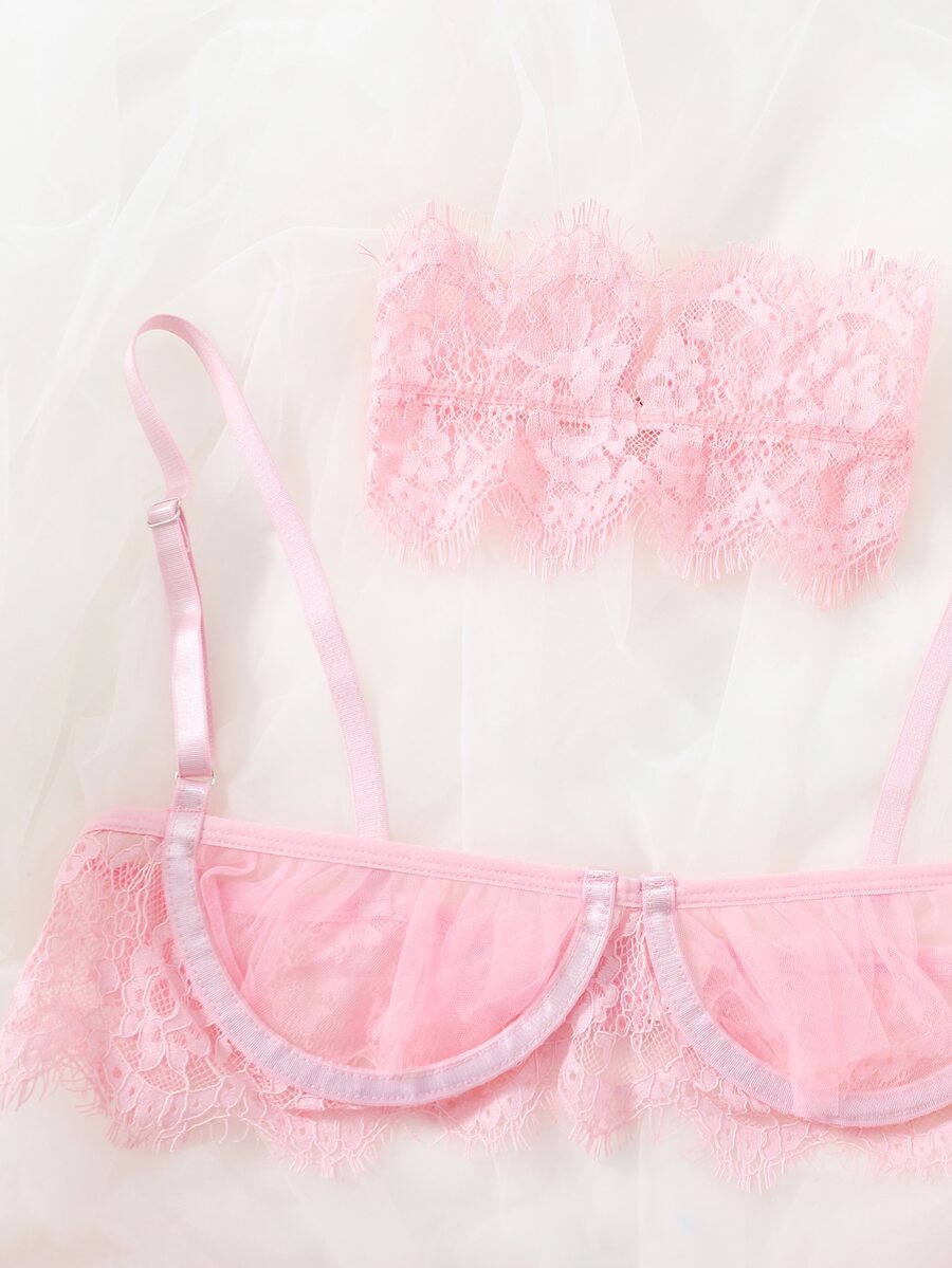 Set lingerie pizzo floreale con ferretto con choker
