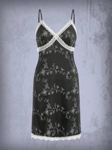 Abito da notte con bretelle sottile con stampa floreale pizzo a contrasto