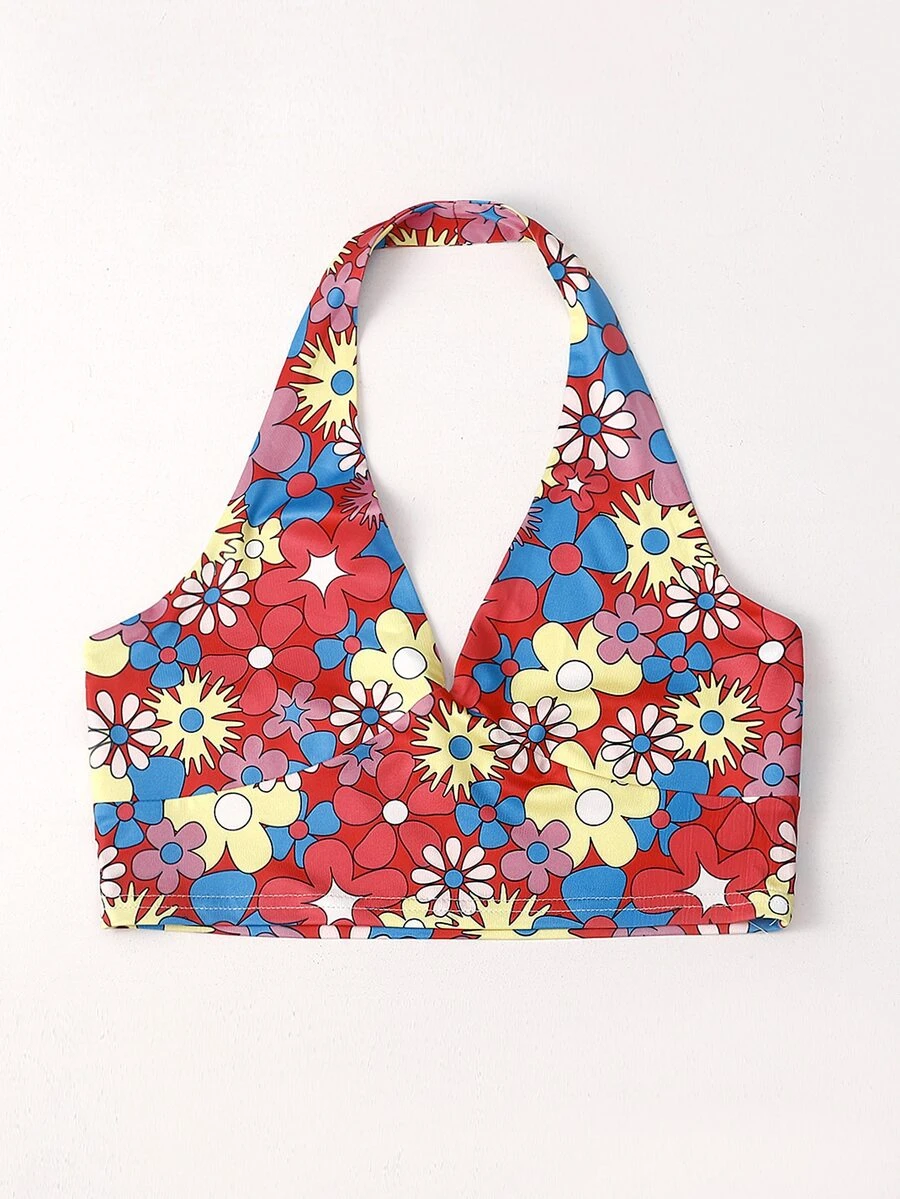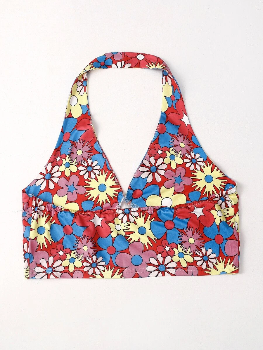Top halter corto con stampa floreale