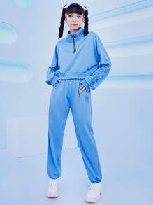 Pantaloni sportivi & Felpa con stampa floreale con mezza zip spalle cadenti