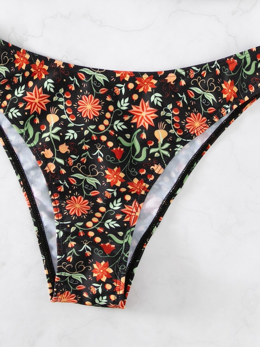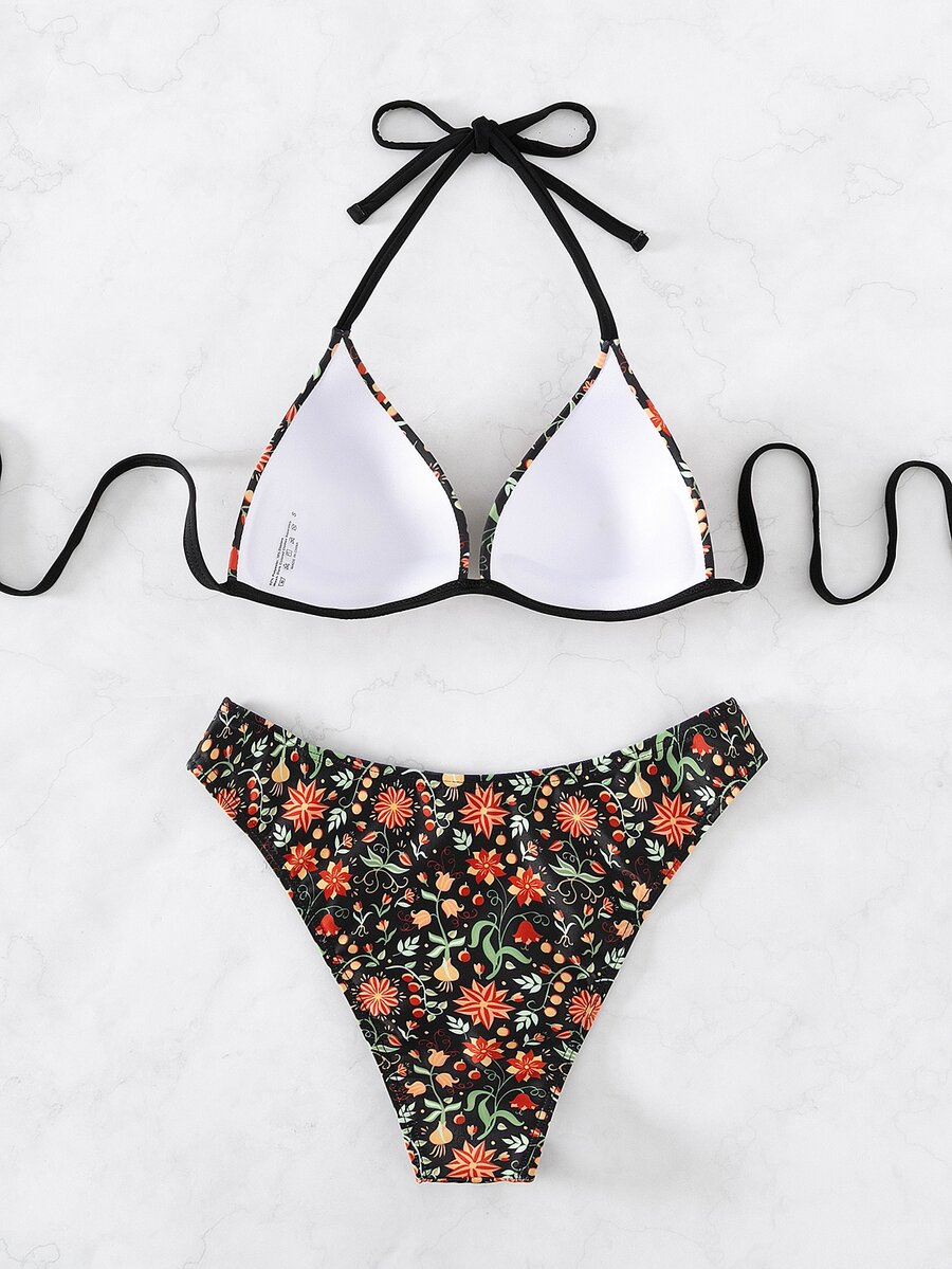 Set bikini estivo a fiori con coppe push-up e scollo all'uncinetto
