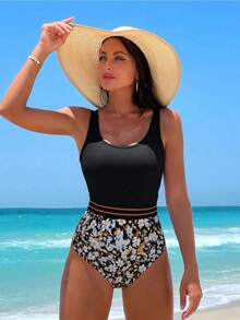 Costume intero con stampa floreale inserto in rete