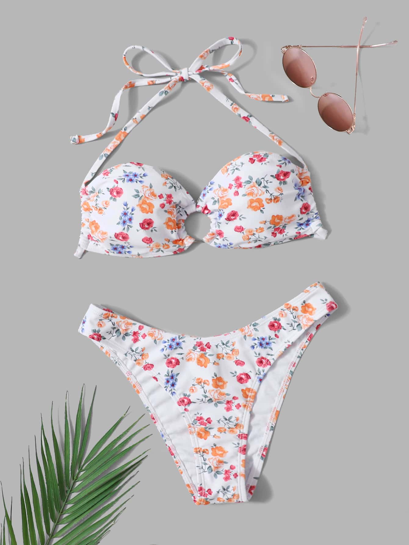 Bikini a collo ad anello con stampa floreale