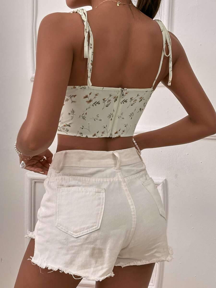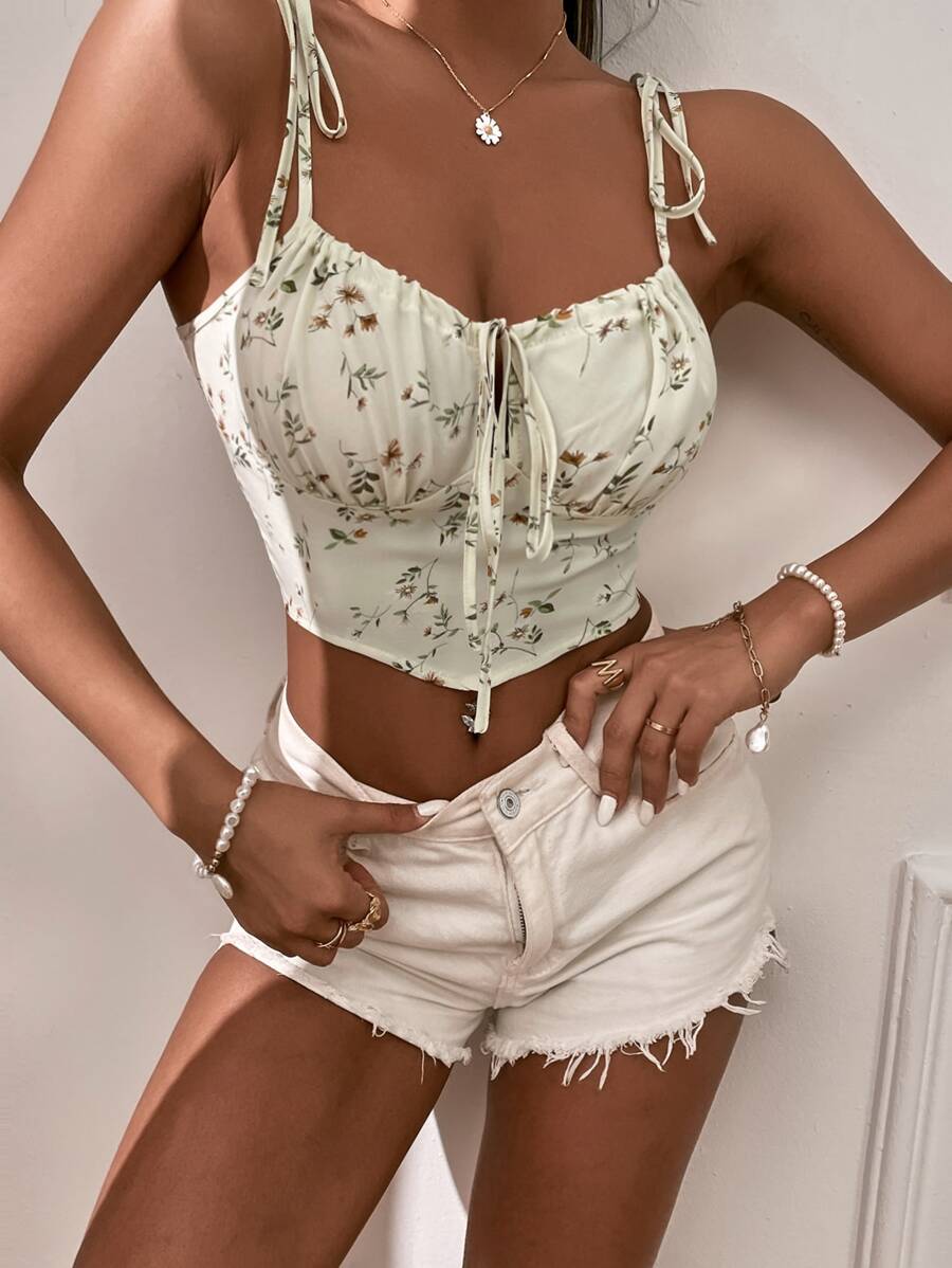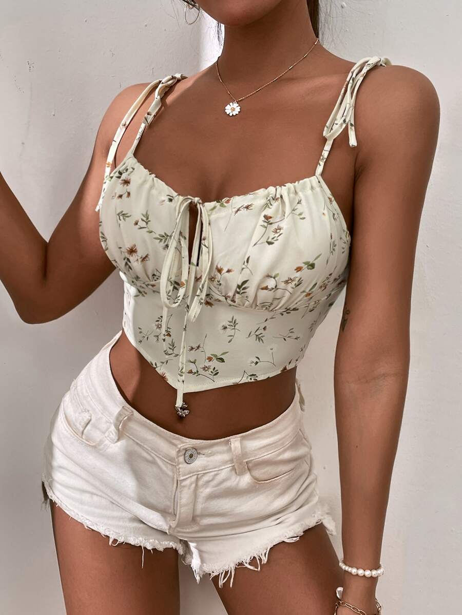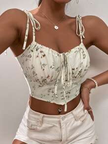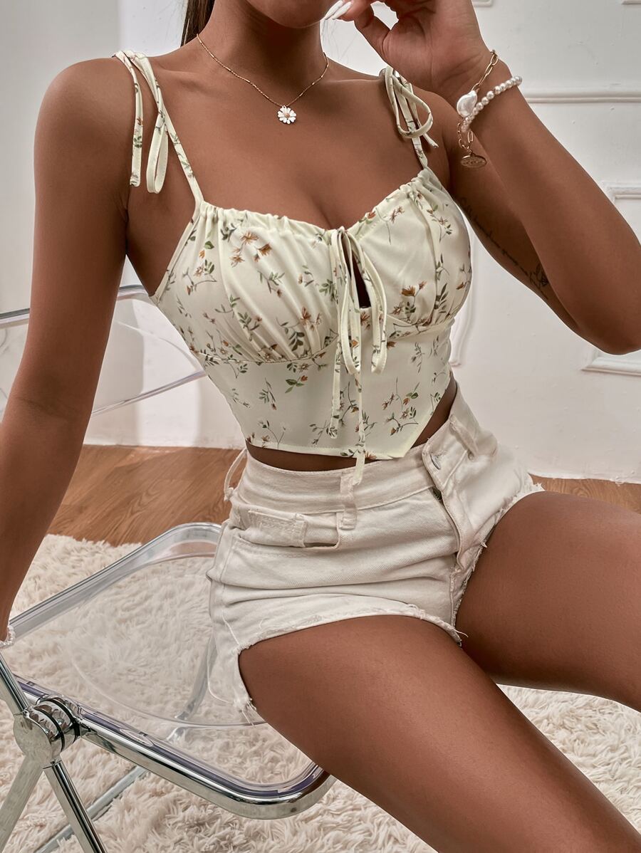 Top con bretelle sottile con stampa floreale bustino arricciato