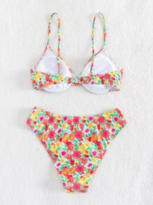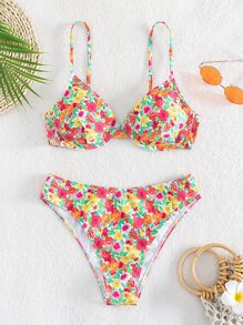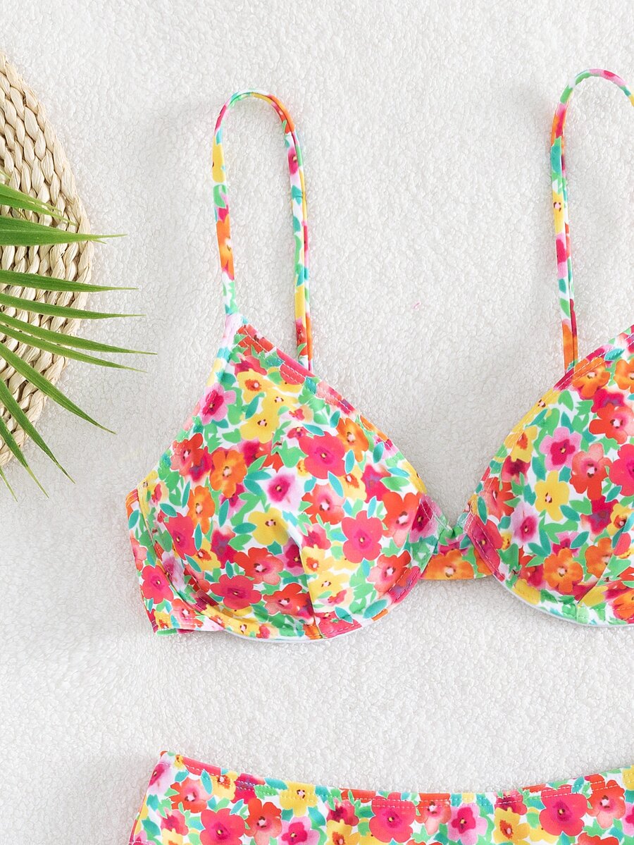 Bikini estivo da spiaggia con ferretto e stampa floreale