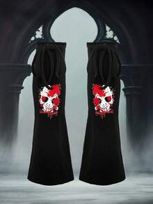 Friday the 13th X ROMWE 1 Coppia di Leggings Stile Gotico Punk Y2K con Stampa di Teschi, Stile Nicchia, Macchie di Inchiostro e Sangue, Stile Bondage da Strada, Casual e di Moda Unisex, Adatti per Cosplay e Abbinamenti Quotidiani