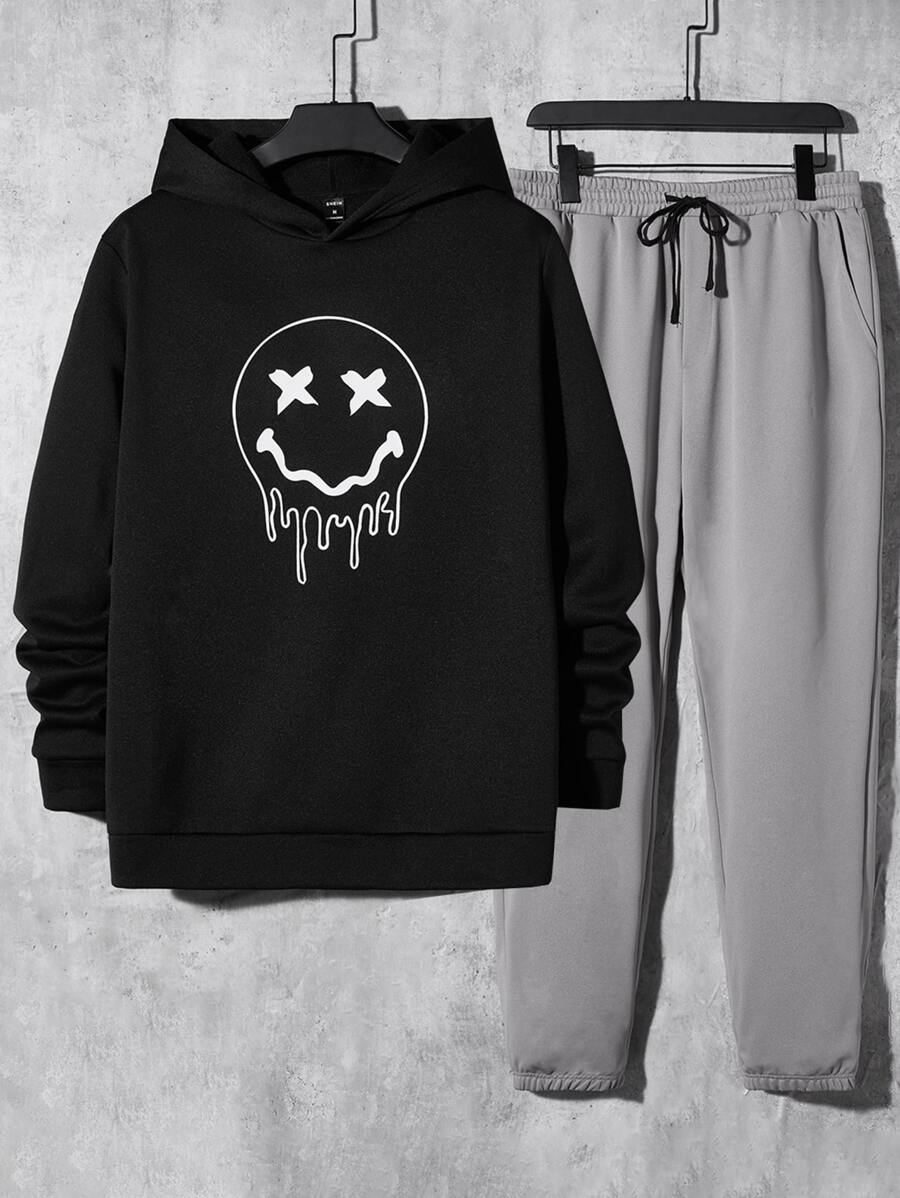 GENTILAND uomo con stampa espressione Felpa con cappuccio & con coulisse Pantaloni sportivi