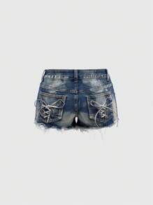 Pantaloncini mini con vita con cordoncino, stile vintage rovinato con fogli d'argento, in stile Gal