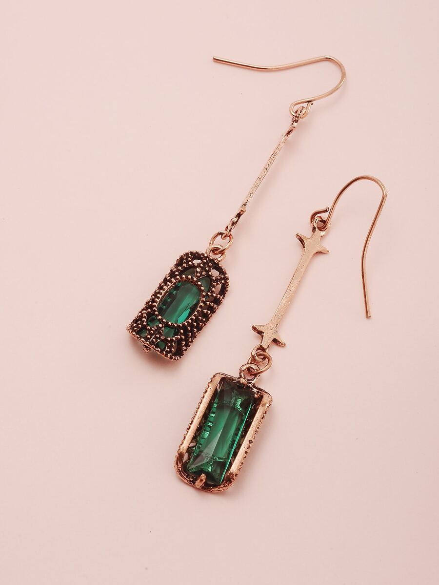 Orecchini pendenti geometrici con decorazione pietra preziosa