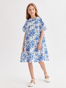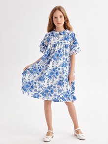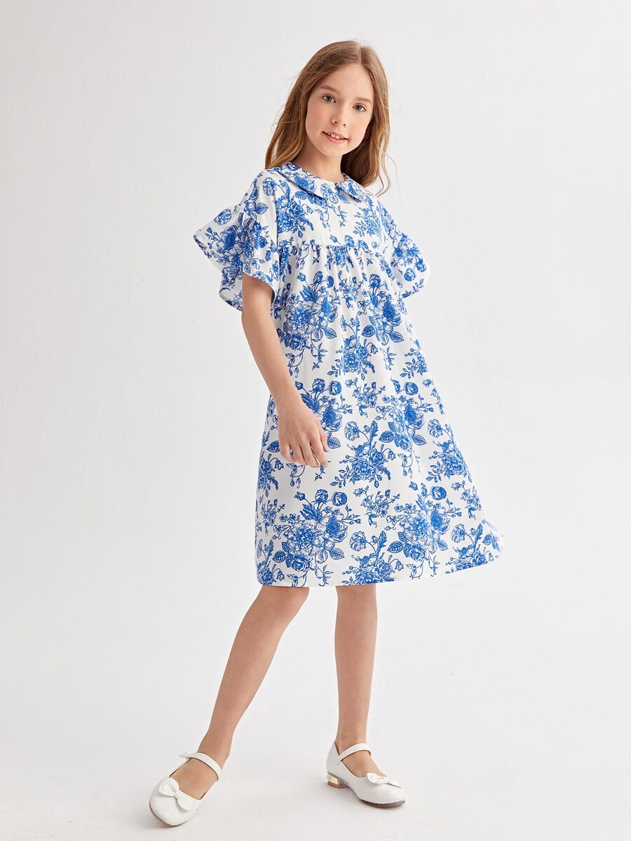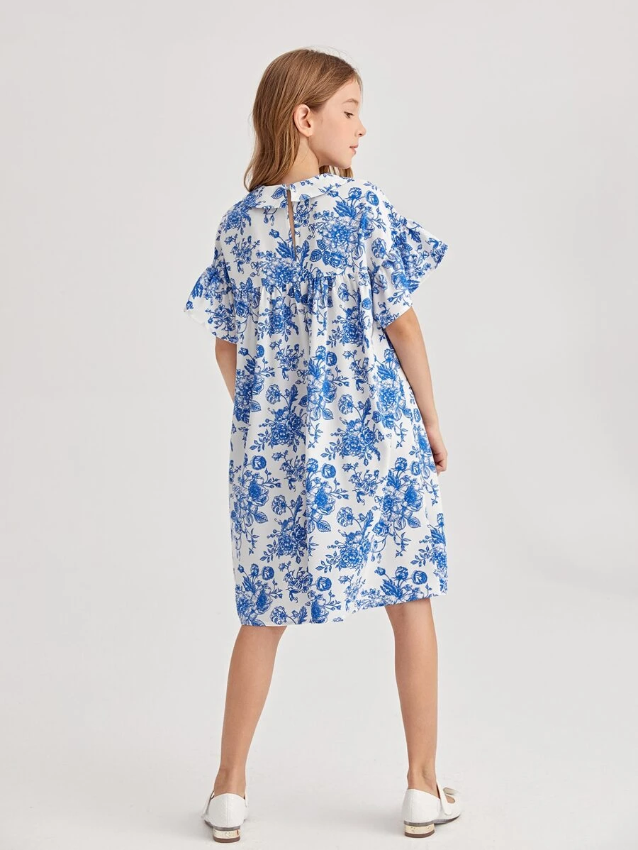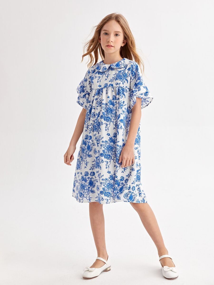 Abito smock floreale con colletto peter pan