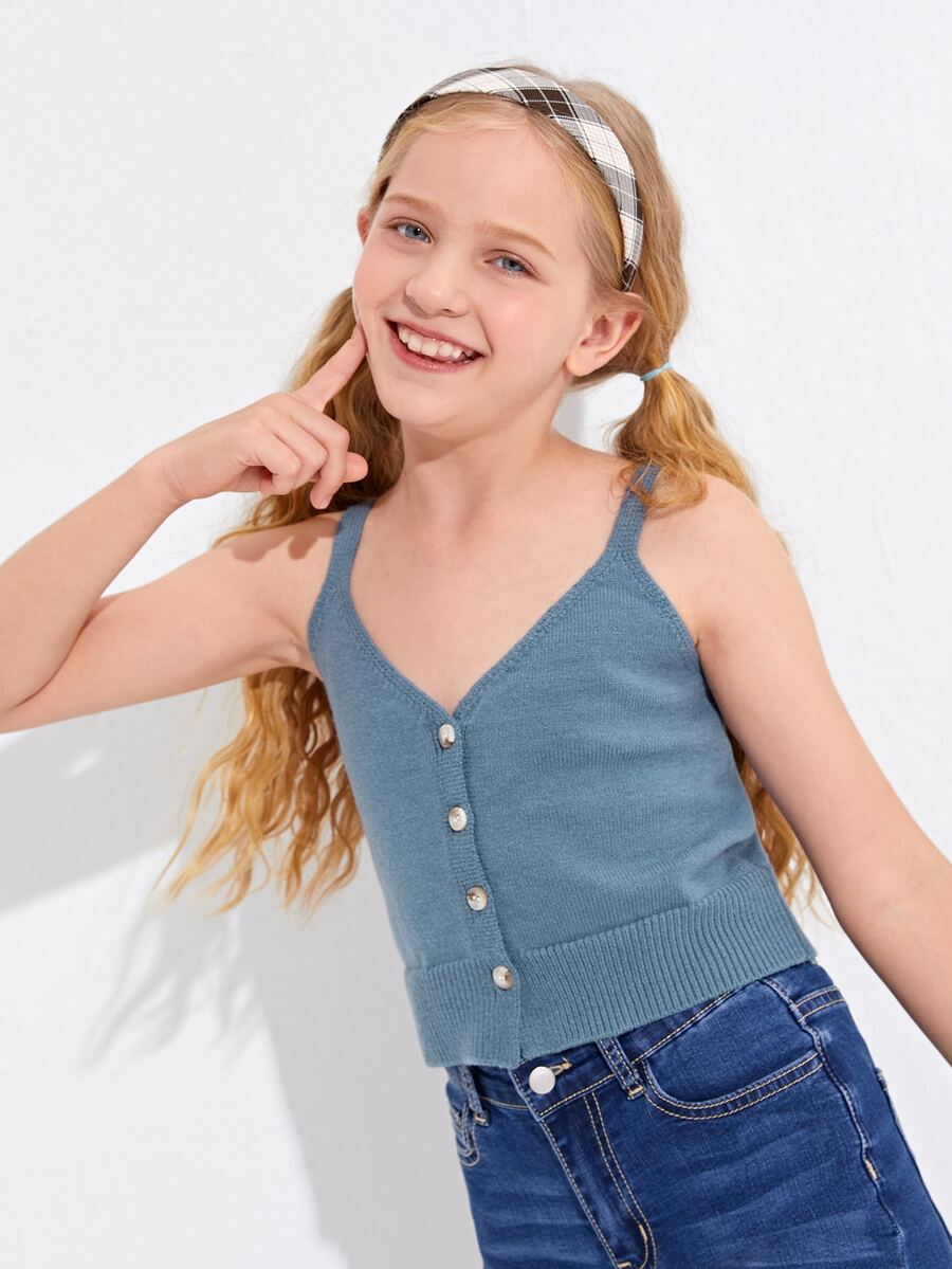 Top intrecciato con bretelle sottile monocolore con bottone frontale