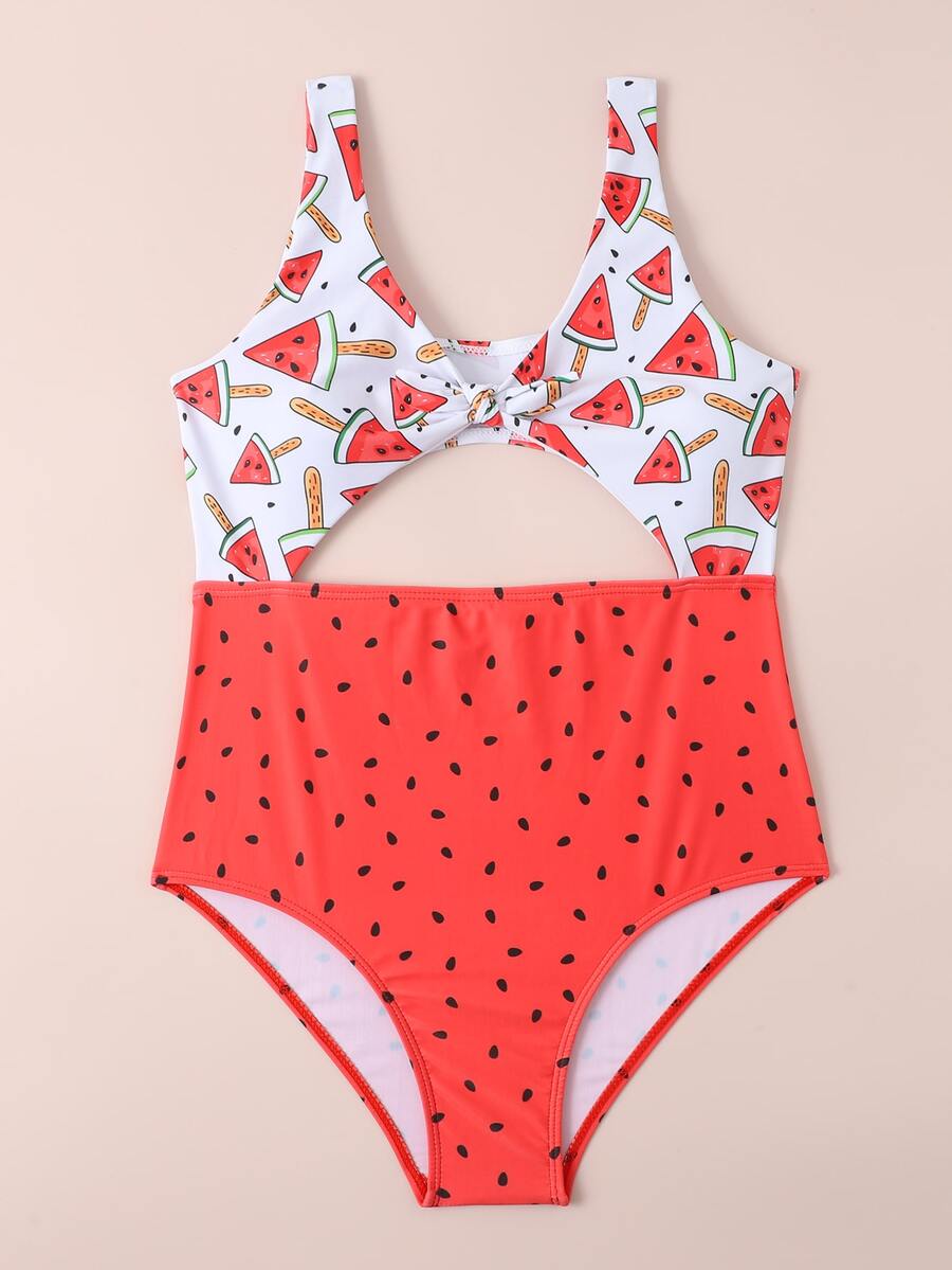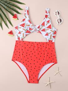 Costume da bagno intero con nodo e taglio con stampa anguria