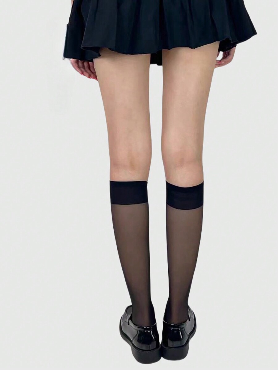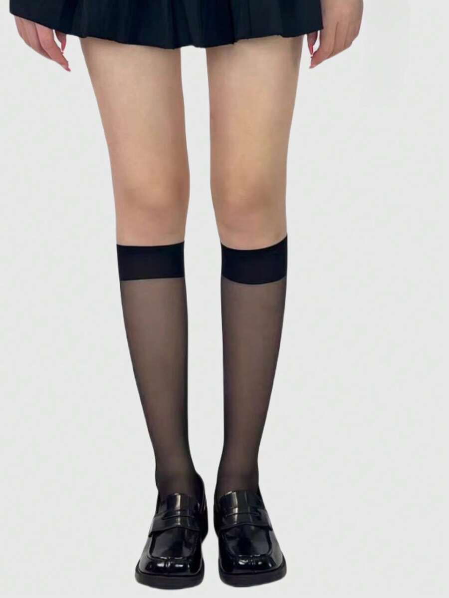 Goth 1 Paio di calze di lunghezza polpaccio nere con inserti in patchwork, adatte per tutte le stagioni