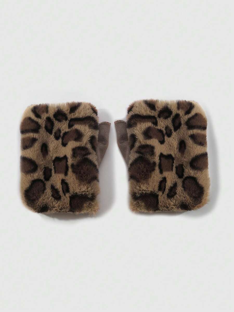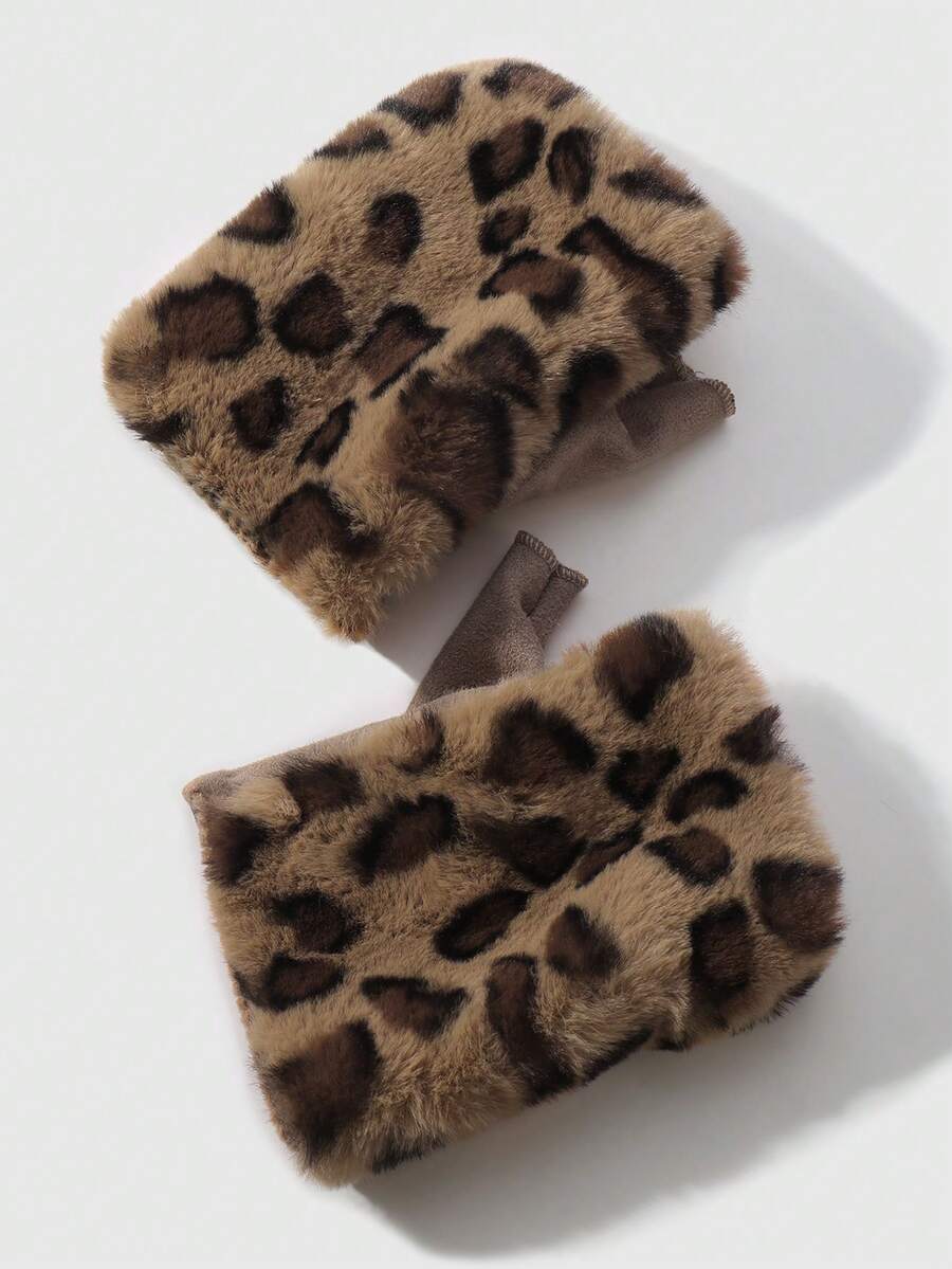 Goth 1 Coppia di guanti senza dita in finta pelliccia morbida e calda, in stile retrò Y2K, di alta qualità, con stampe di animali (tigre, leopardo), colore giallo-marrone, adatti per le donne, per uso quotidiano o come regalo per le vacanze