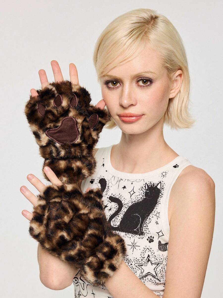Goth 1 Paio di Guanti Retrò Y2K in Pelliccia con Stampa Leopardata, Alla Moda e Minimalisti, Adatti per Uso Quotidiano, Feste, Raduni, Autunno/Inverno