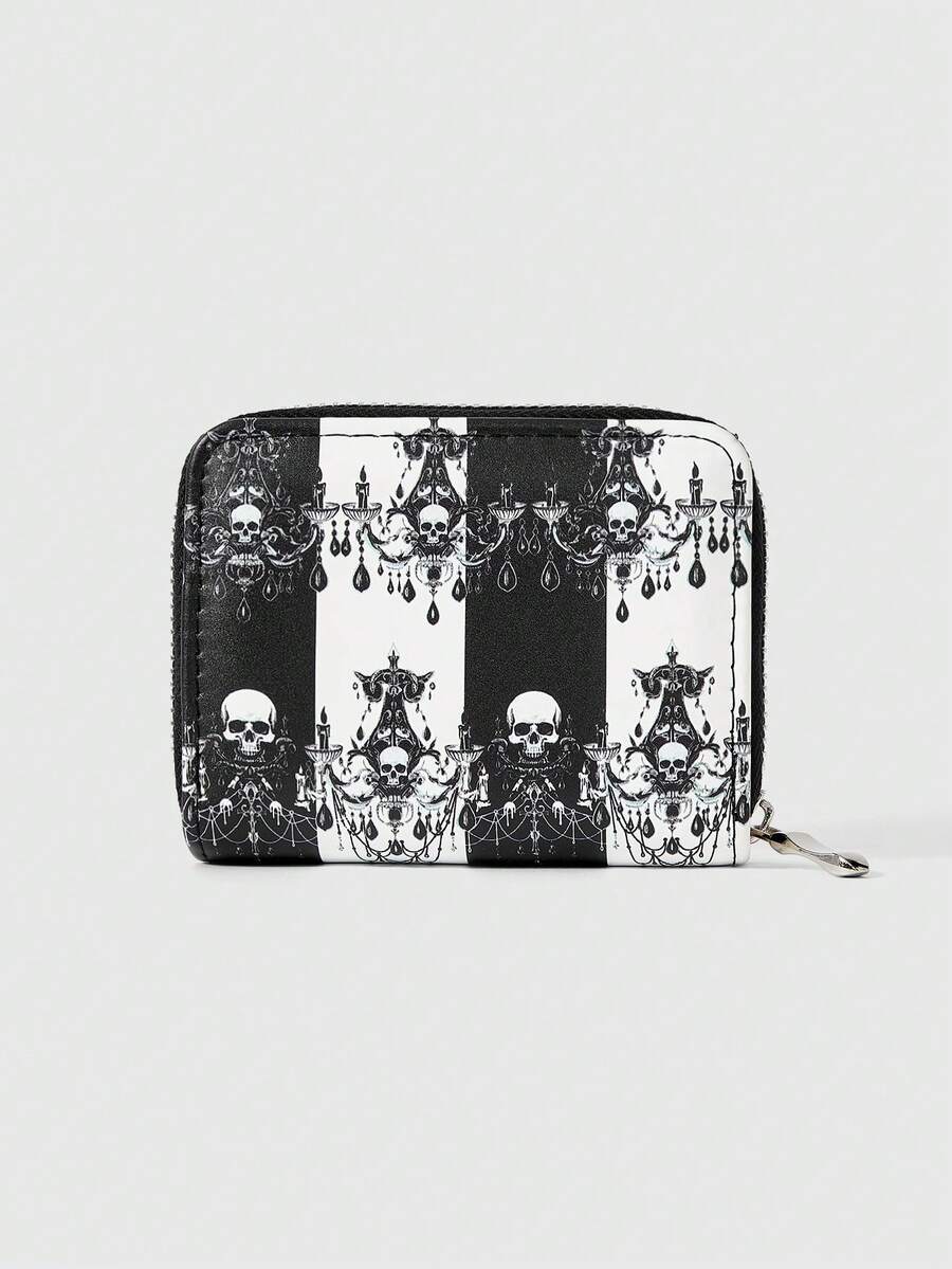 Goth 1 Pezzo Portafoglio corto da donna minimalista con design a cerniera e cristallo a forma di teschio