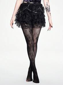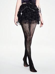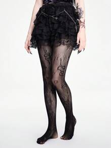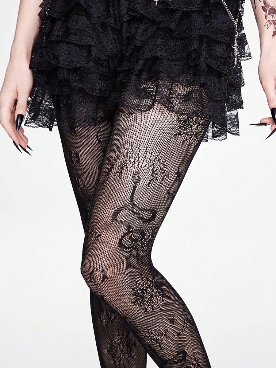 Goth 1 Coppia Di Calze A Rete Nere Personalizzate Con Design Totem Con Nuvole, Stelle, Sole E Serpente Per Le Donne, Tutte Le Stagioni