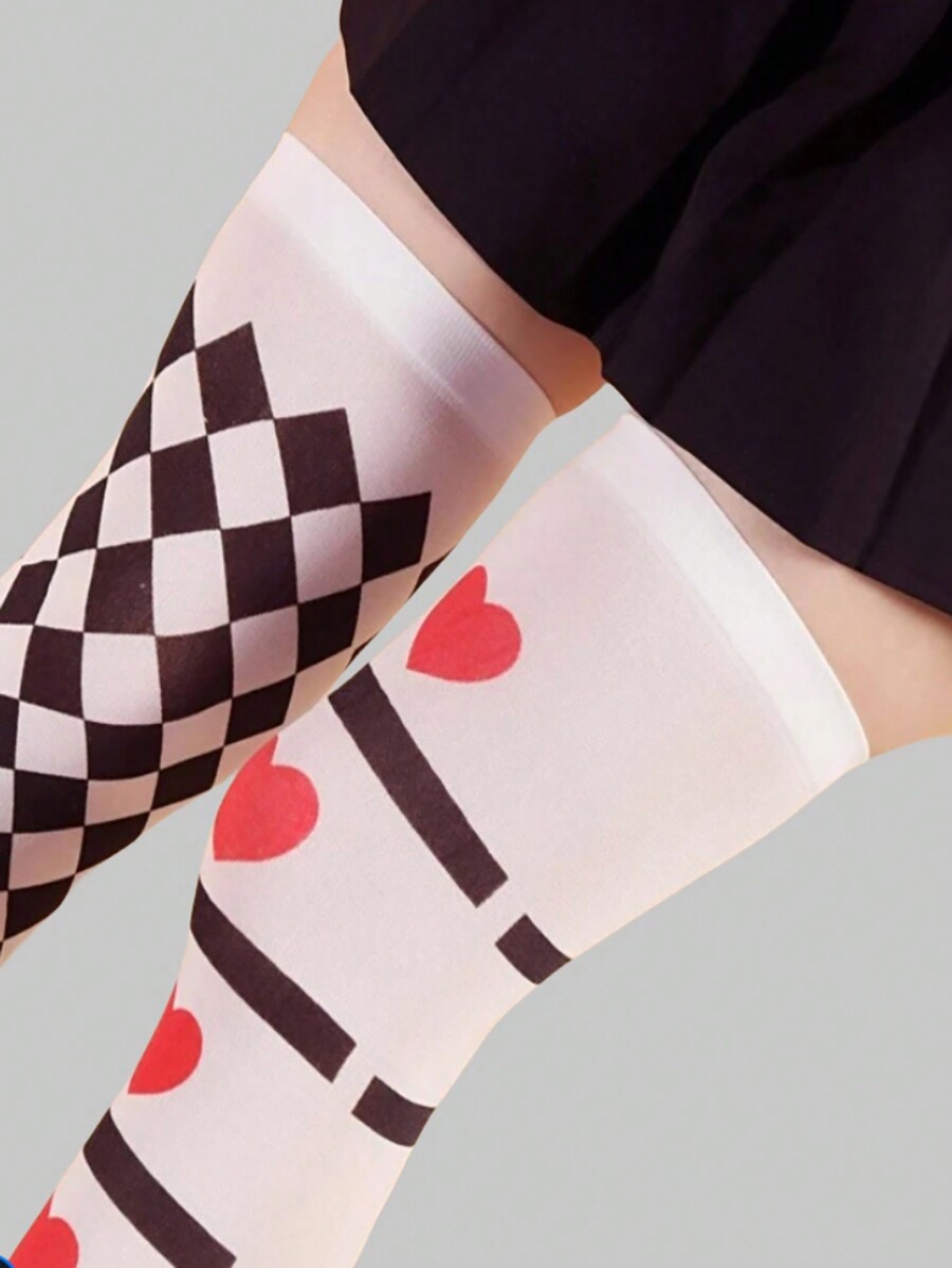 Goth Donna 1 paio Parigine con modello a quadri e cuore