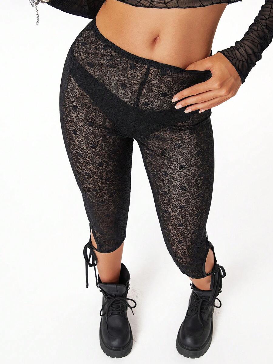 Goth 1 pezzo Pantaloni copricostume estivi con design a fiori in pizzo e laccio regolabile, adatti per l'estate e Ognissanti