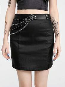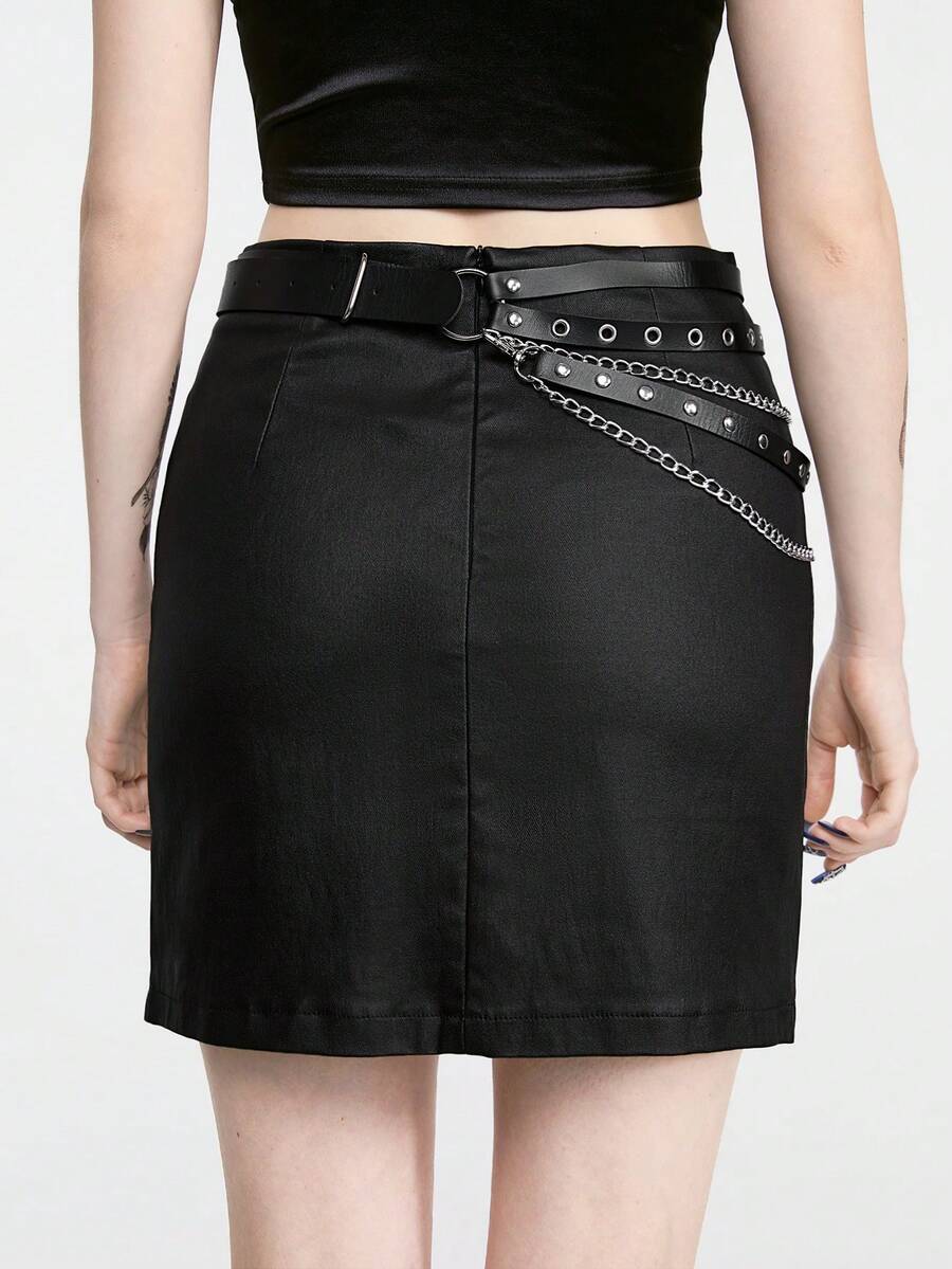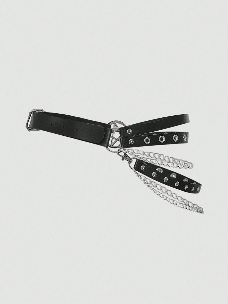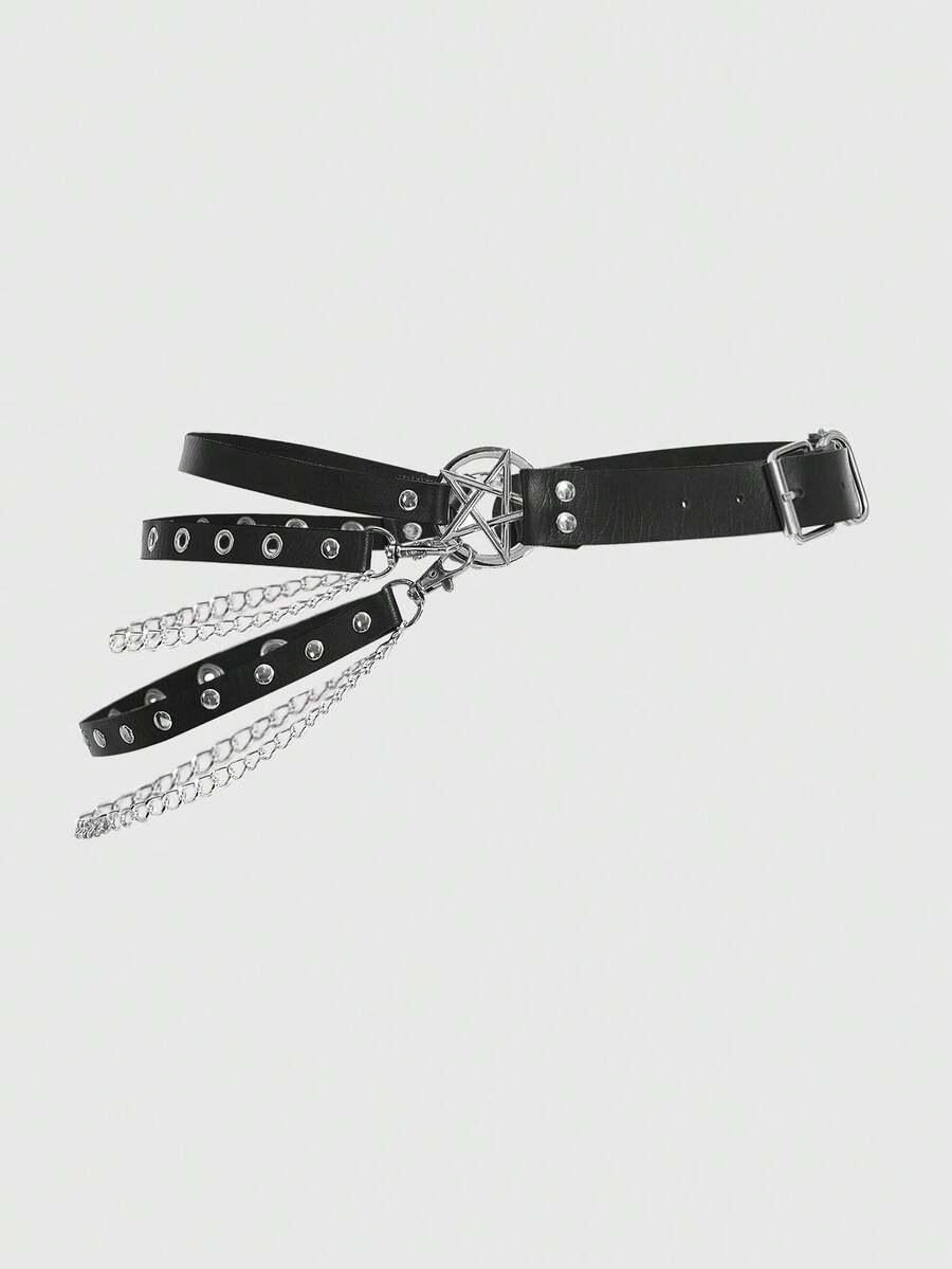 Goth 1 pezzo Cintura nera con design a pentagramma e tacchi vuoti per donne, adatta per l\"indossamento quotidiano e lo stile punk con catena