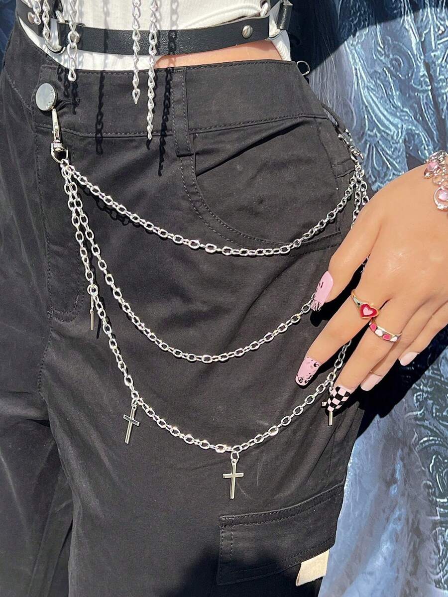 Goth 1 Pezzo Catena A Vita A Tre Strati Decorata Con Croce Di Fuoco Per Pantaloni Da Donna
