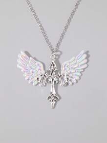 Goth 1 Pezzo Collana con croce a fiamma e ali d'angelo, stile Y2K, perfetta per uso quotidiano