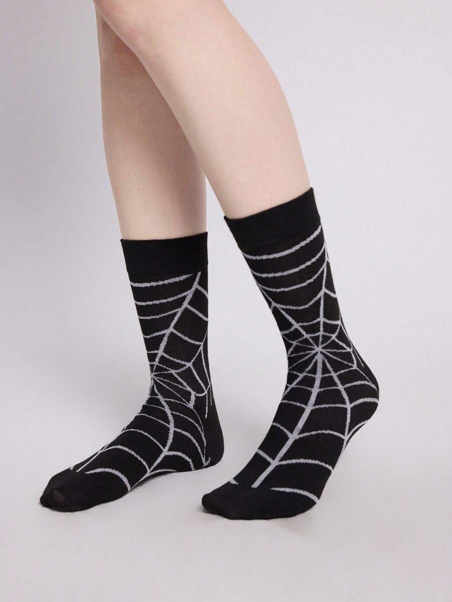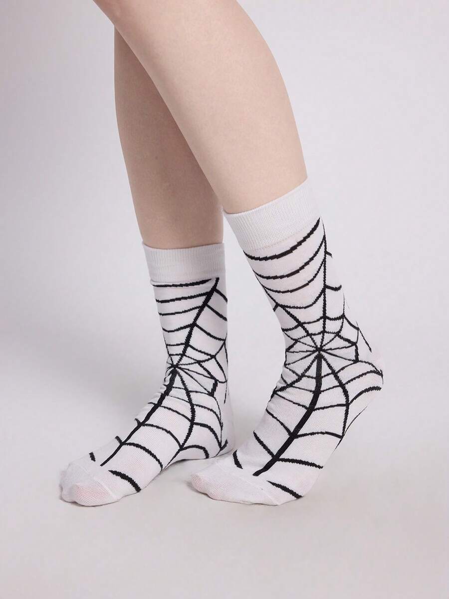 Goth 2 paia di calze a metà gamba da donna con motivo a ragnatela, nero e bianco