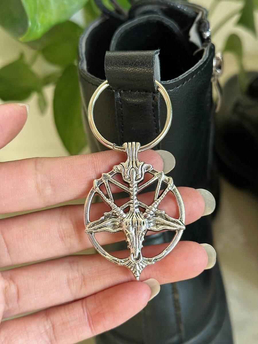 Goth 2 pezzi Decorazione a ciondolo a forma di testa di pecora e pentagramma gotico per scarpe, autunno