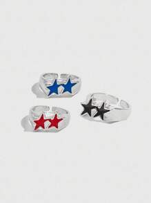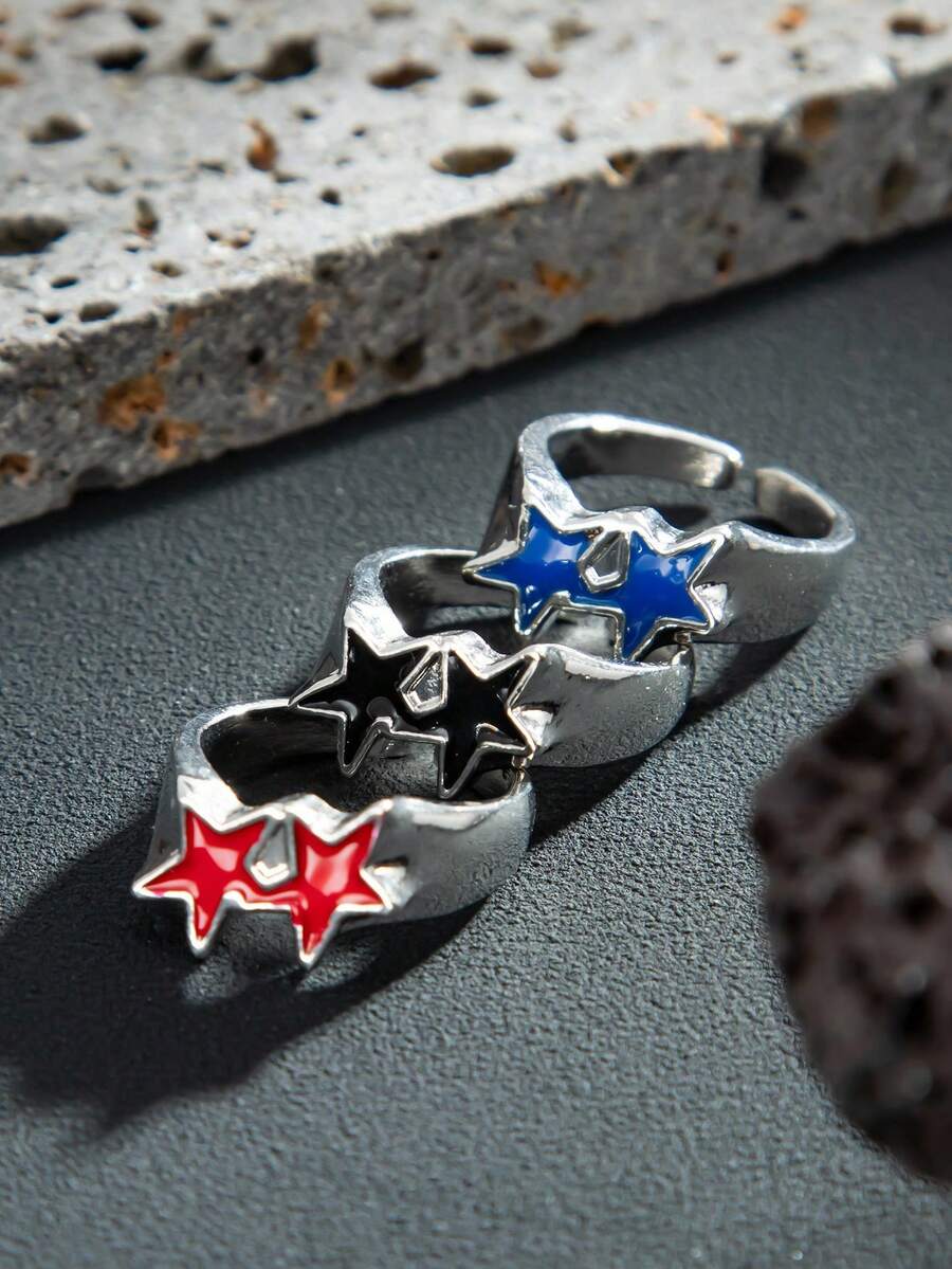 Goth 3 Pezzi Anello Set Punk a Forma di Stella, Gioielli Unisex, Taglia Regolabile, Regalo per il 4 Luglio