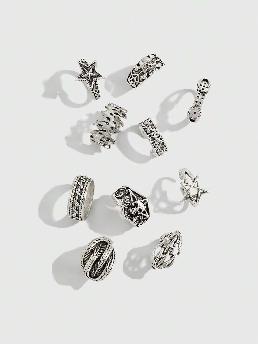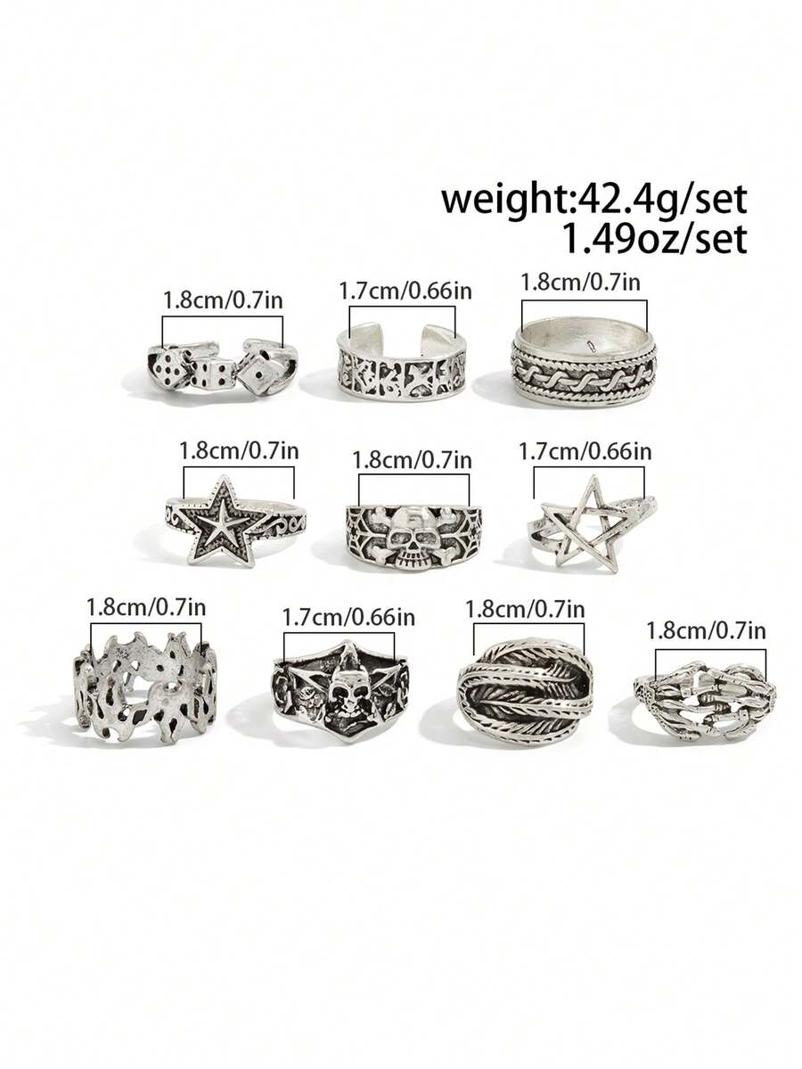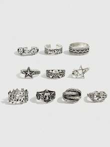 Goth Set di 4 anelli a spirale a forma di stella, stile punk, set di anelli regolabili per coppie