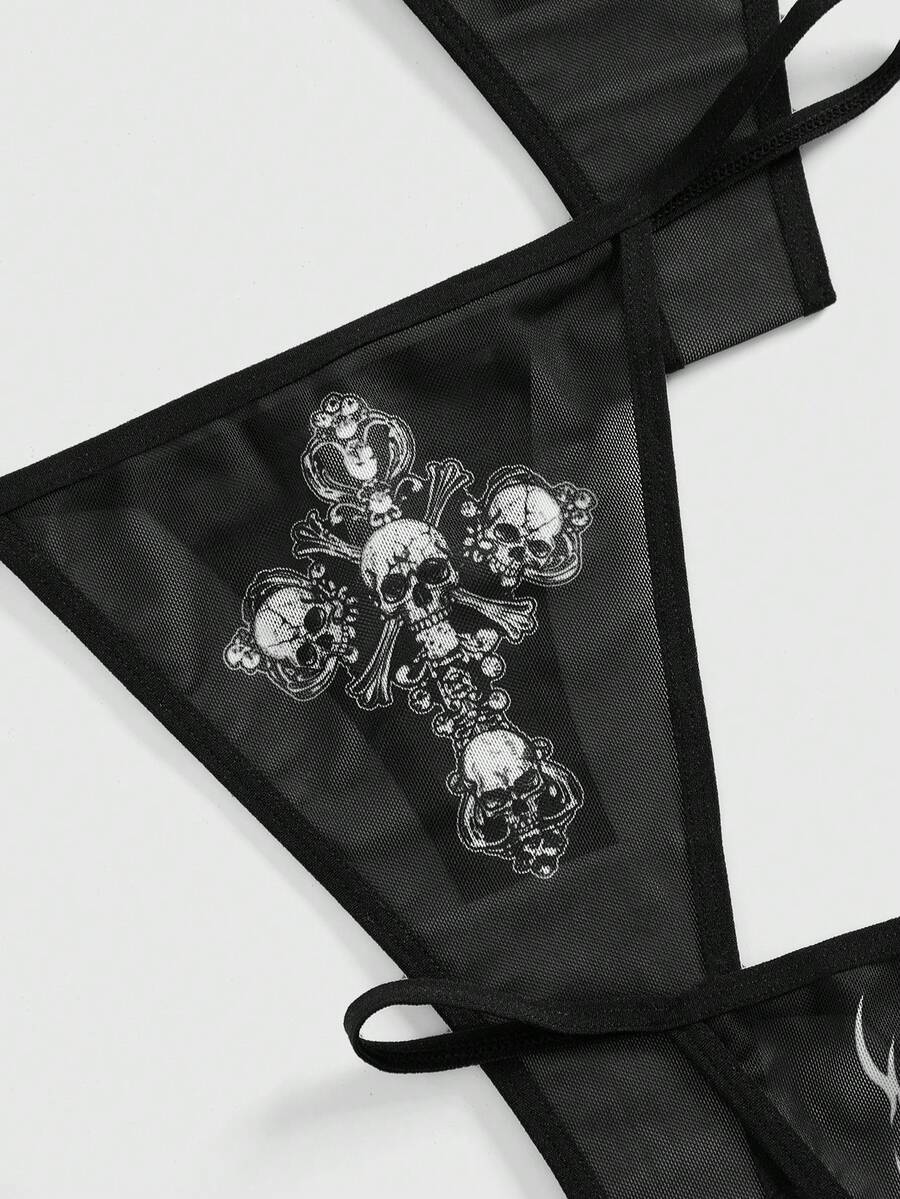 Goth 5 pezzi/set Perizoma con stampa di stile gotico di scheletro, ragnatela, croce, numeri