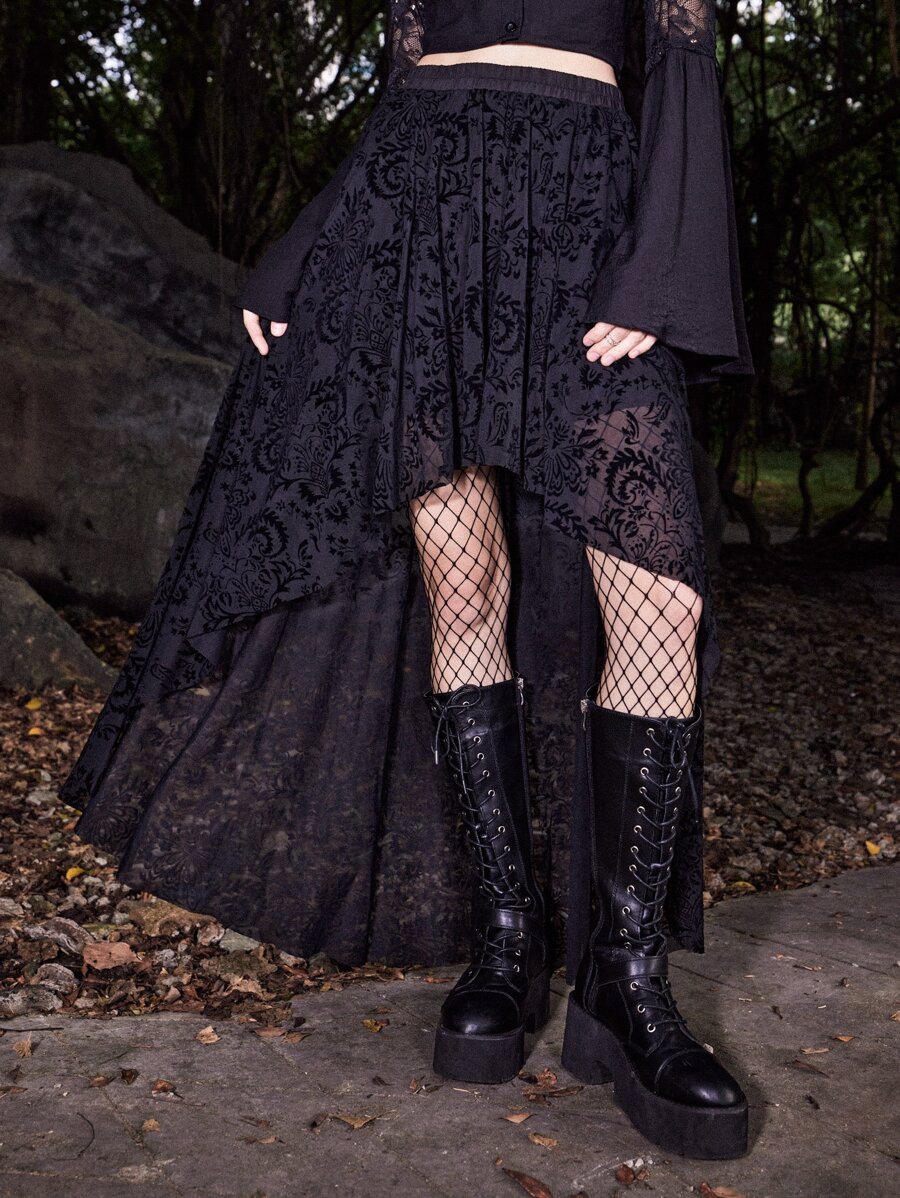Goth Gonne stampato tulle a contrasto asimmetrico