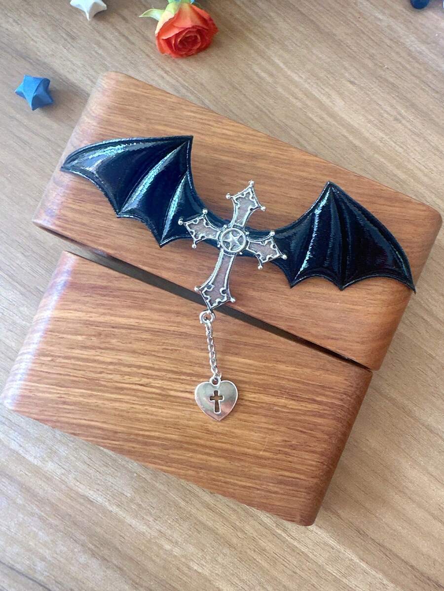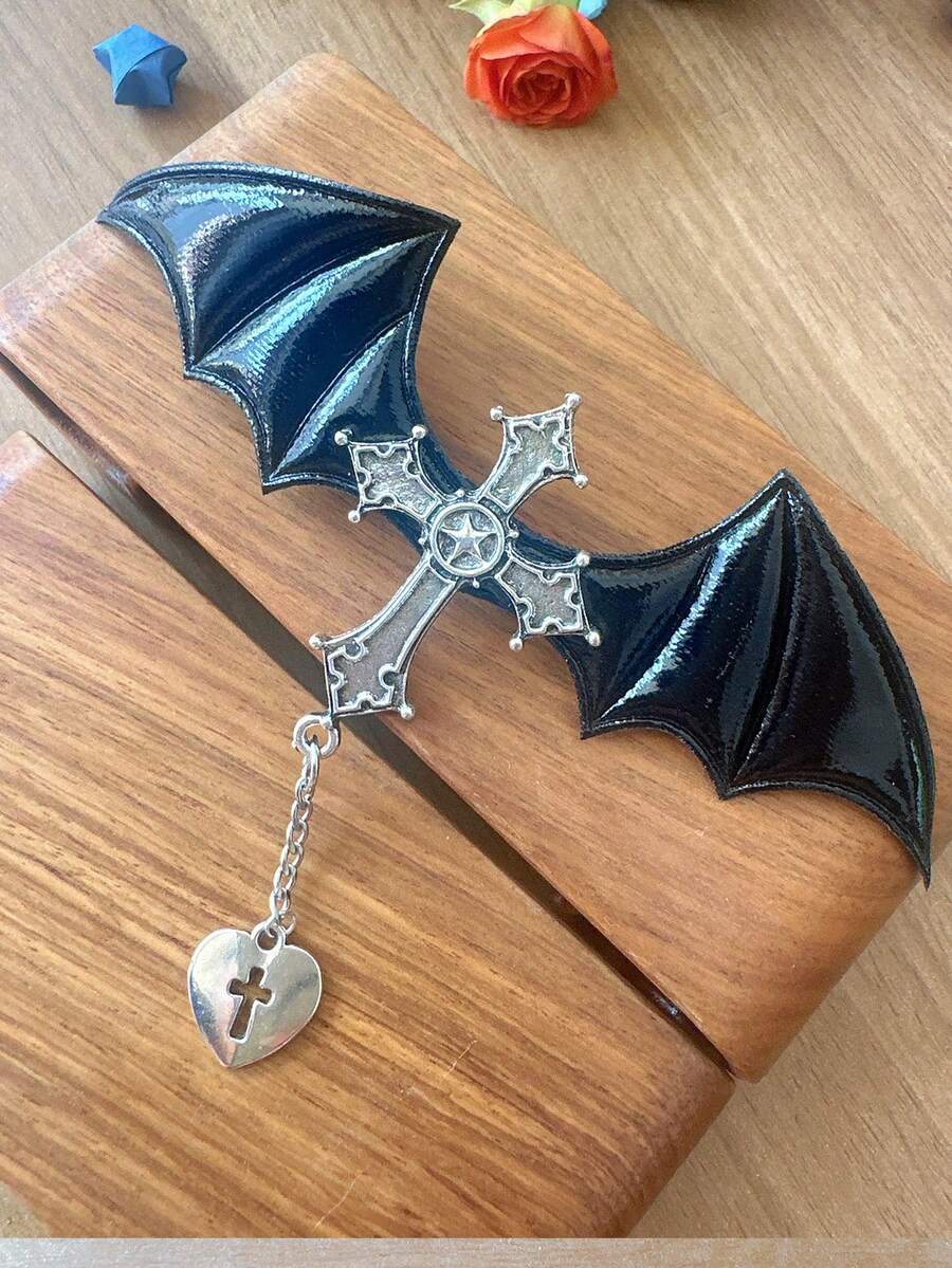 Goth Fermaglio per capelli pipistrello & con design croce