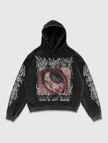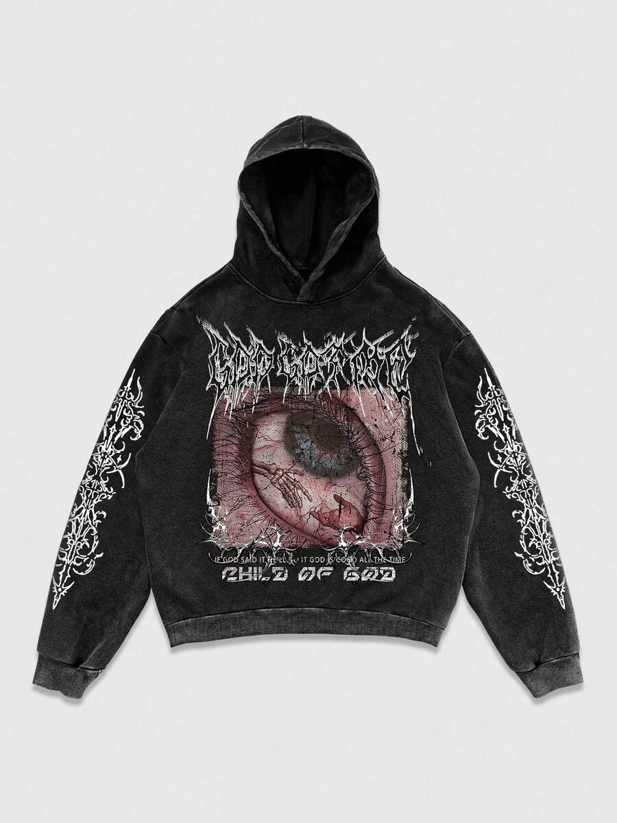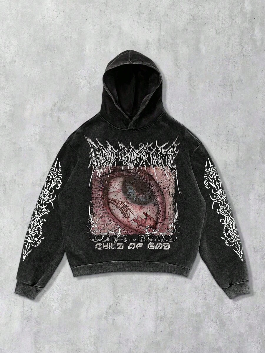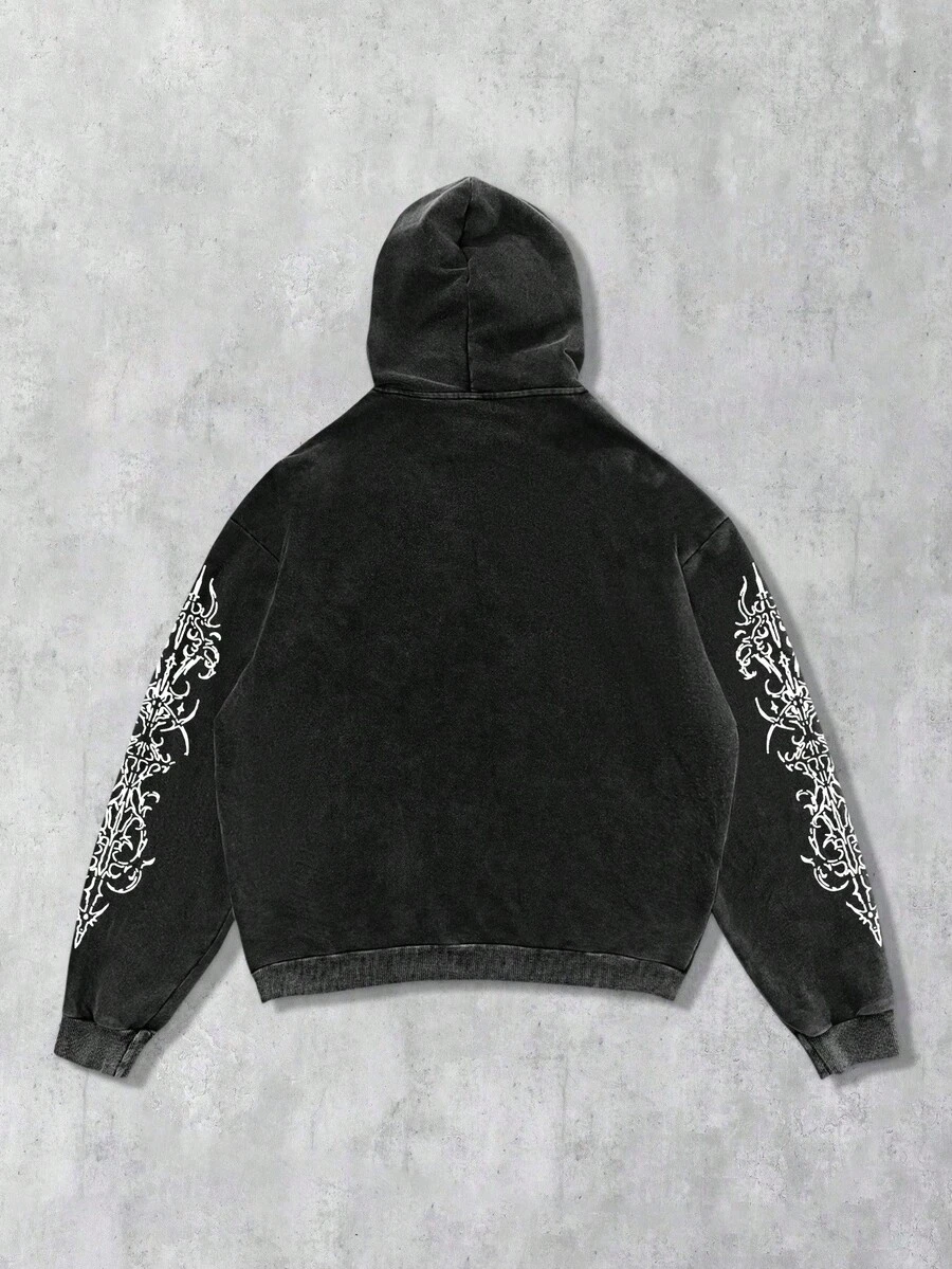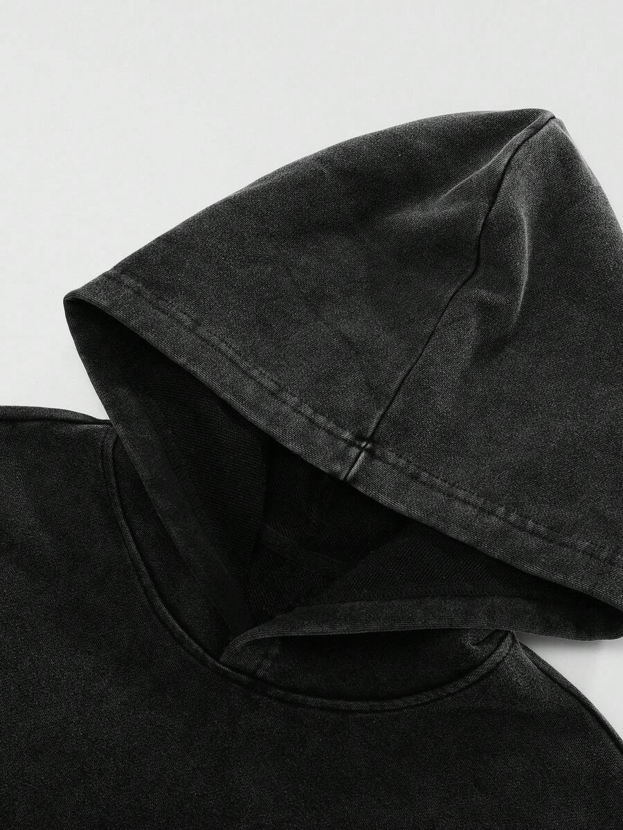 Goth Felpa con cappuccio nera lavata con acido per Ognissanti, senza tasche, autunnale, per uomo