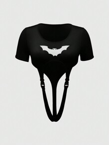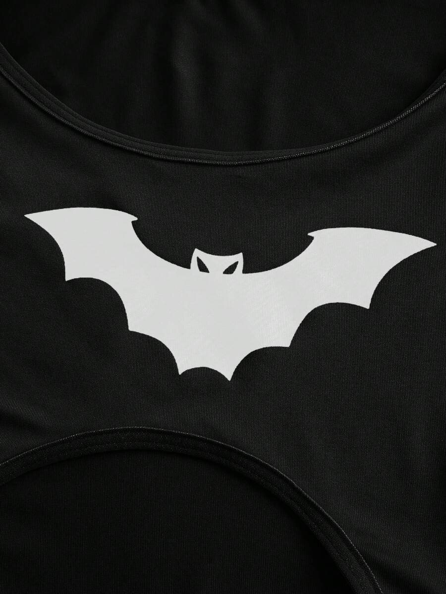 Tuta nera con stampa di pipistrelli per festival di musica gothic