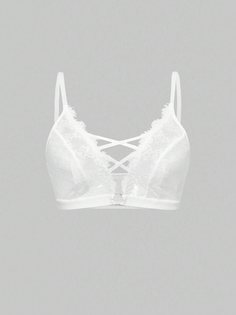 Goth Reggiseno bralette casual da tutti i giorni con fiori in pizzo, anello metallico incrociato e coppa a triangolo