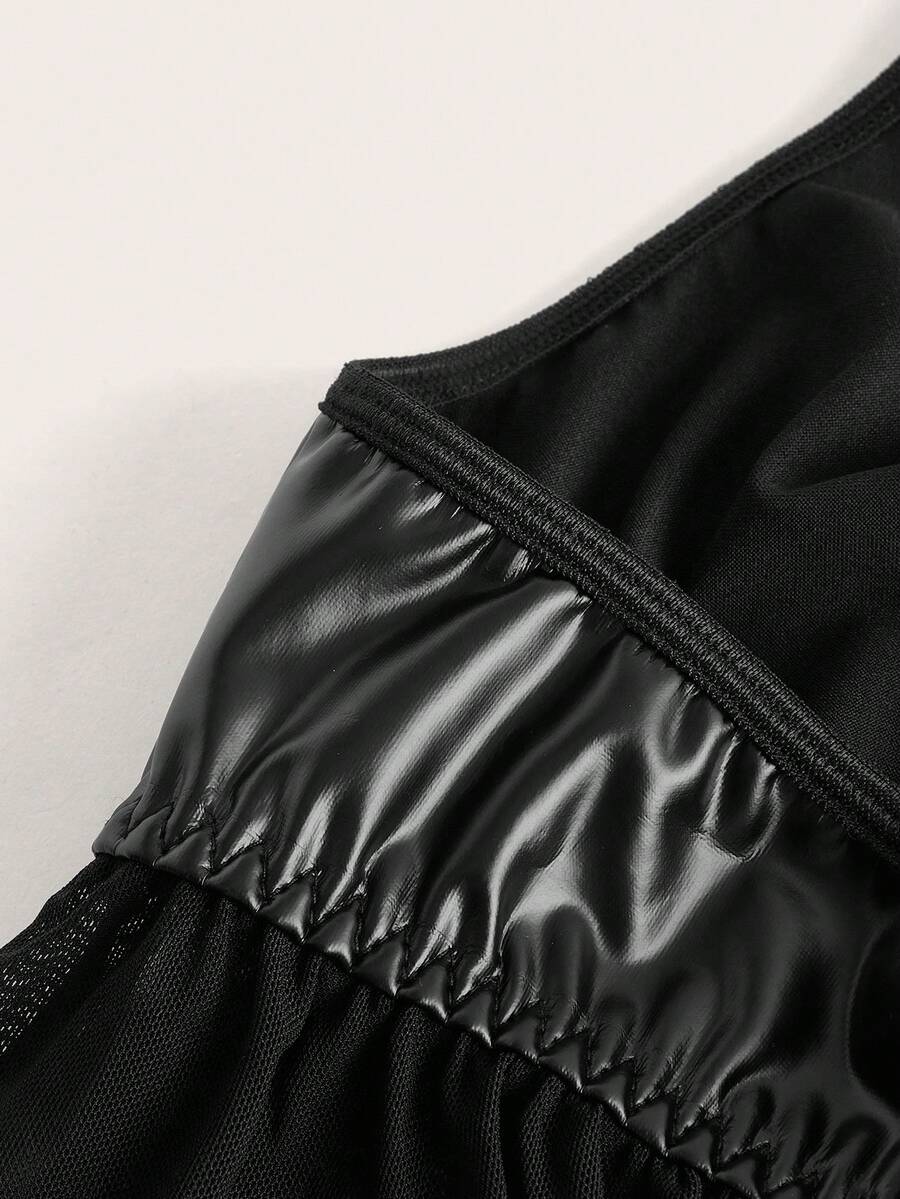 Goth Abiti pizzo a contrasto halter PU con perizoma