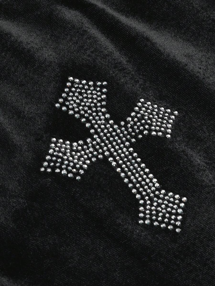 Goth Pantaloni a zampa con vita con cordoncino in velluto a motivo a croce, per la scuola