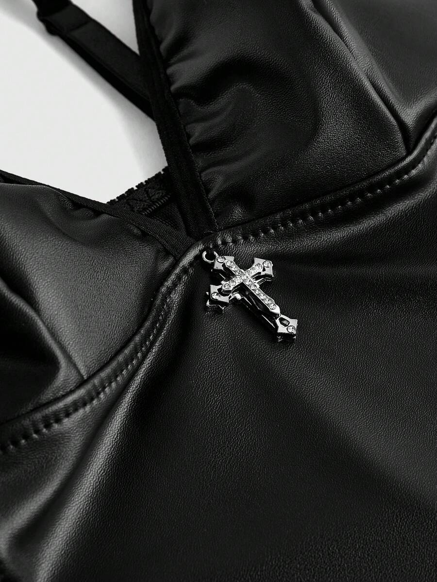 Goth Body sexy in pelle PU con pendente a croce gotico, per rave