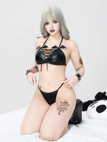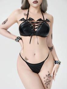 Goth Set di lingerie gotica con reggiseno a triangolo 3D a forma di pipistrello e perizoma, sexy, adatto per Ognissanti