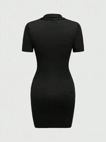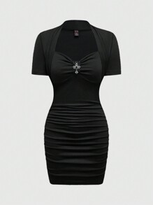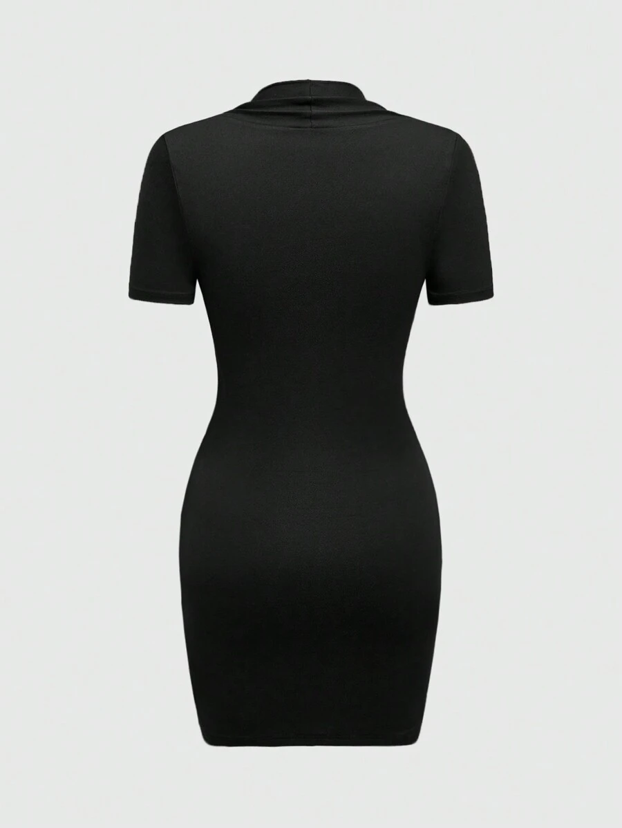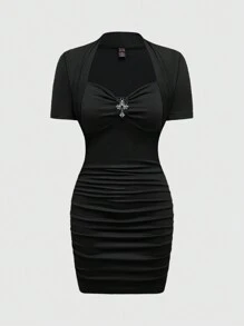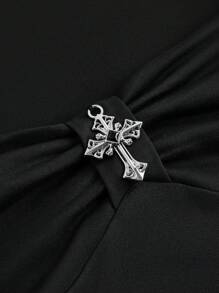 Goth Abito mini aderente dalle linee gotiche, sexy e attillato, con scollo profondo, vita stretta e dettaglio a croce, di colore nero, adatto a feste, San Valentino e occasioni per donna