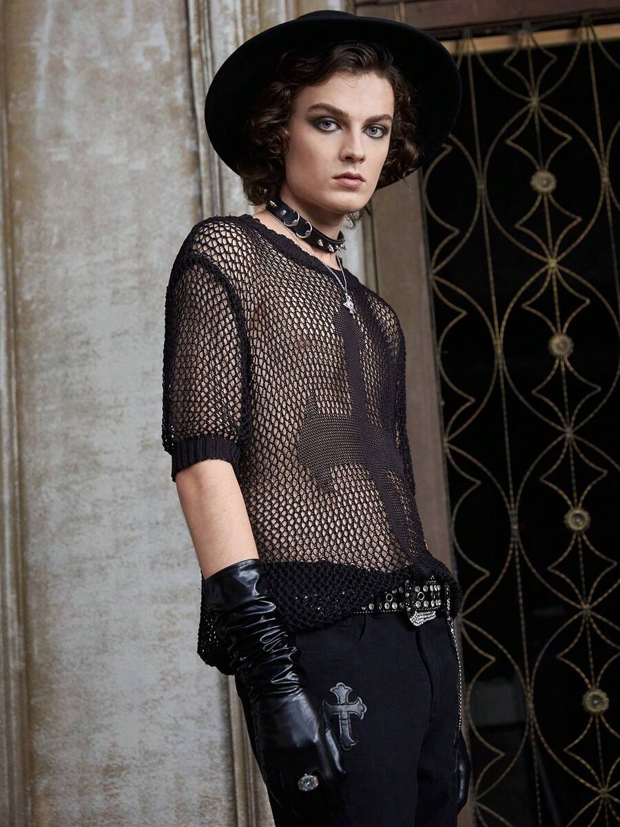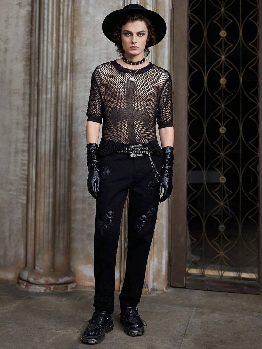 Goth Ragazzi Top in maglia con stampa croce scavato