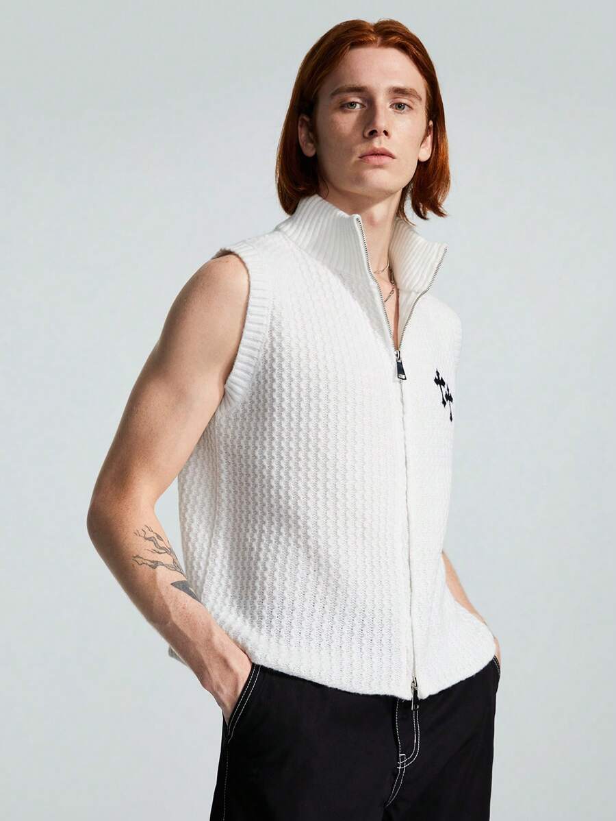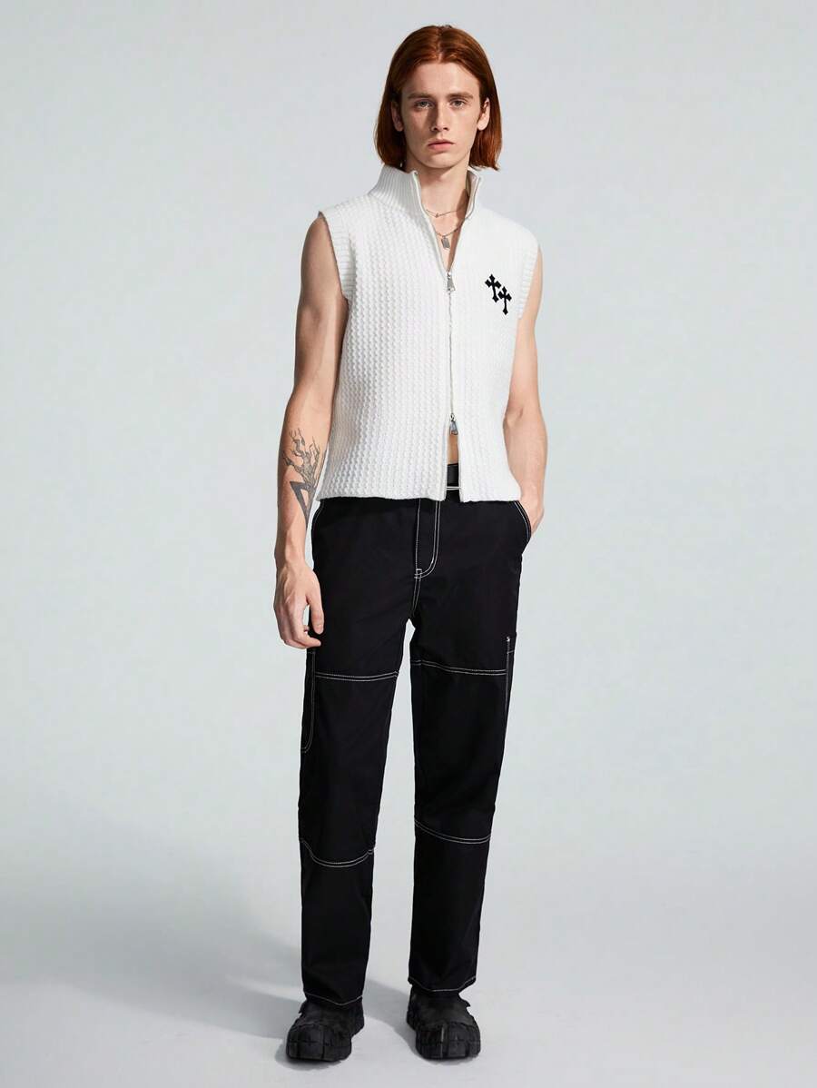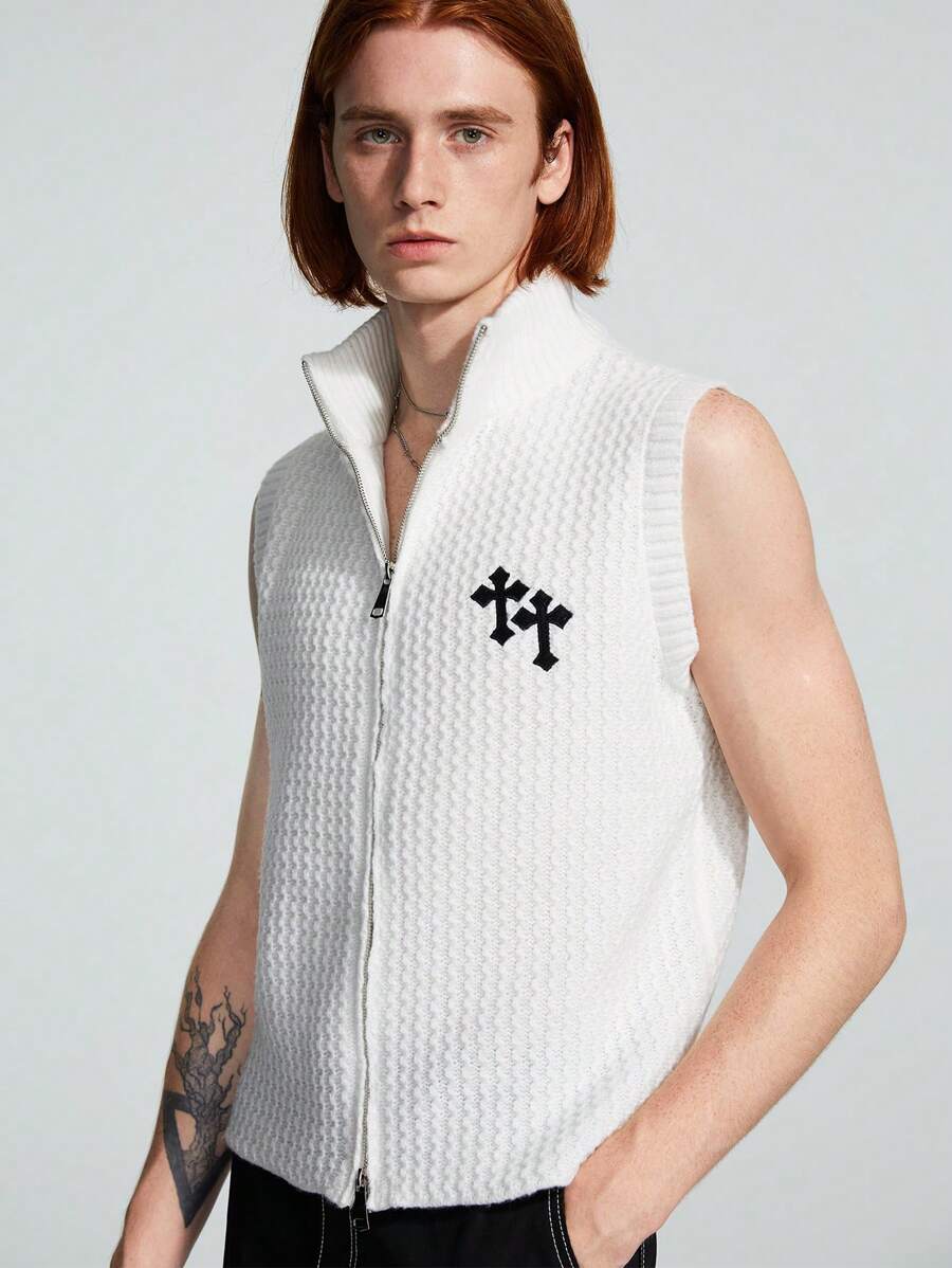 Goth Ragazzi Gilet in maglia con stampa croce con zip
