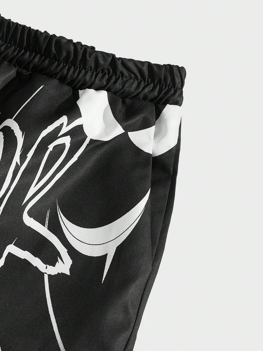 Goth Ragazzi Pantaloni con grafica lettera con coulisse a vita